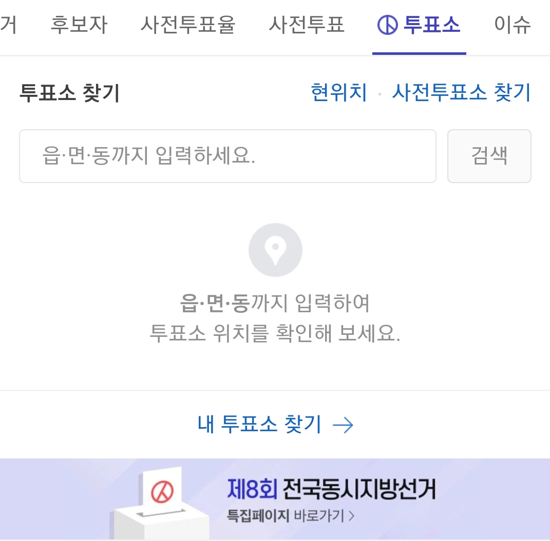 후보자나 투표소, 투표방법을 볼 수 있네요