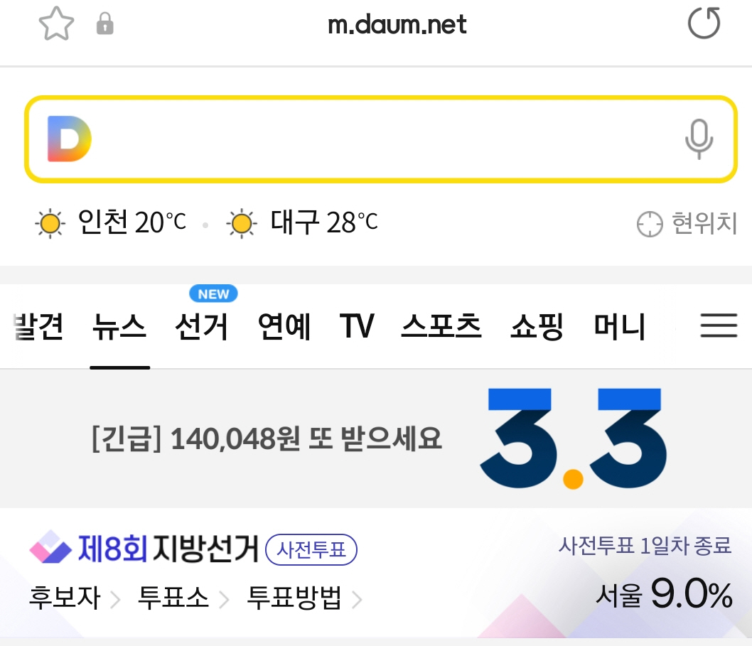다음 메인화면에도 제8회 지방선거 배너가 생겼어요