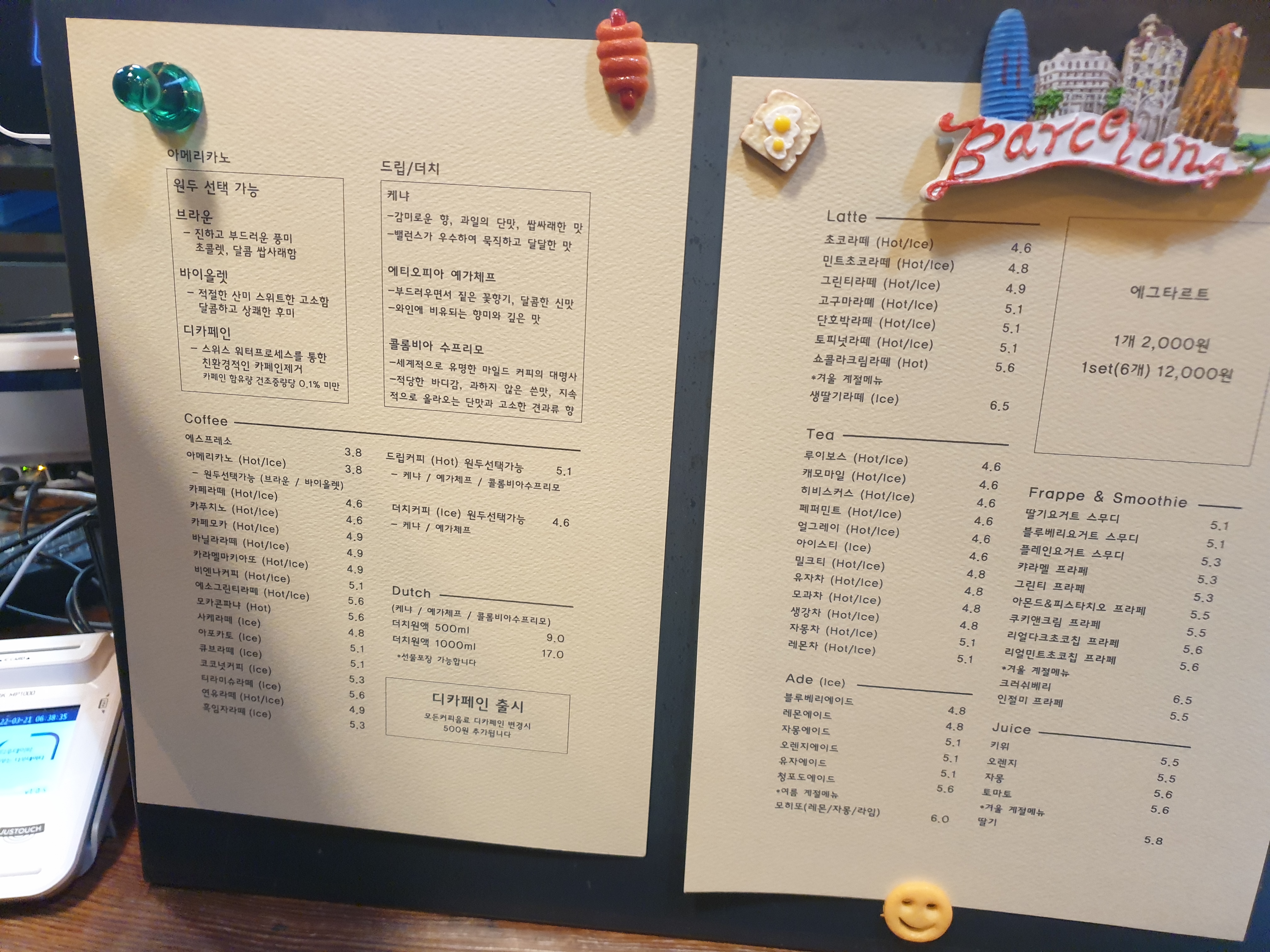 커피와 더치, 라떼, 차에다 에이드 많죠??