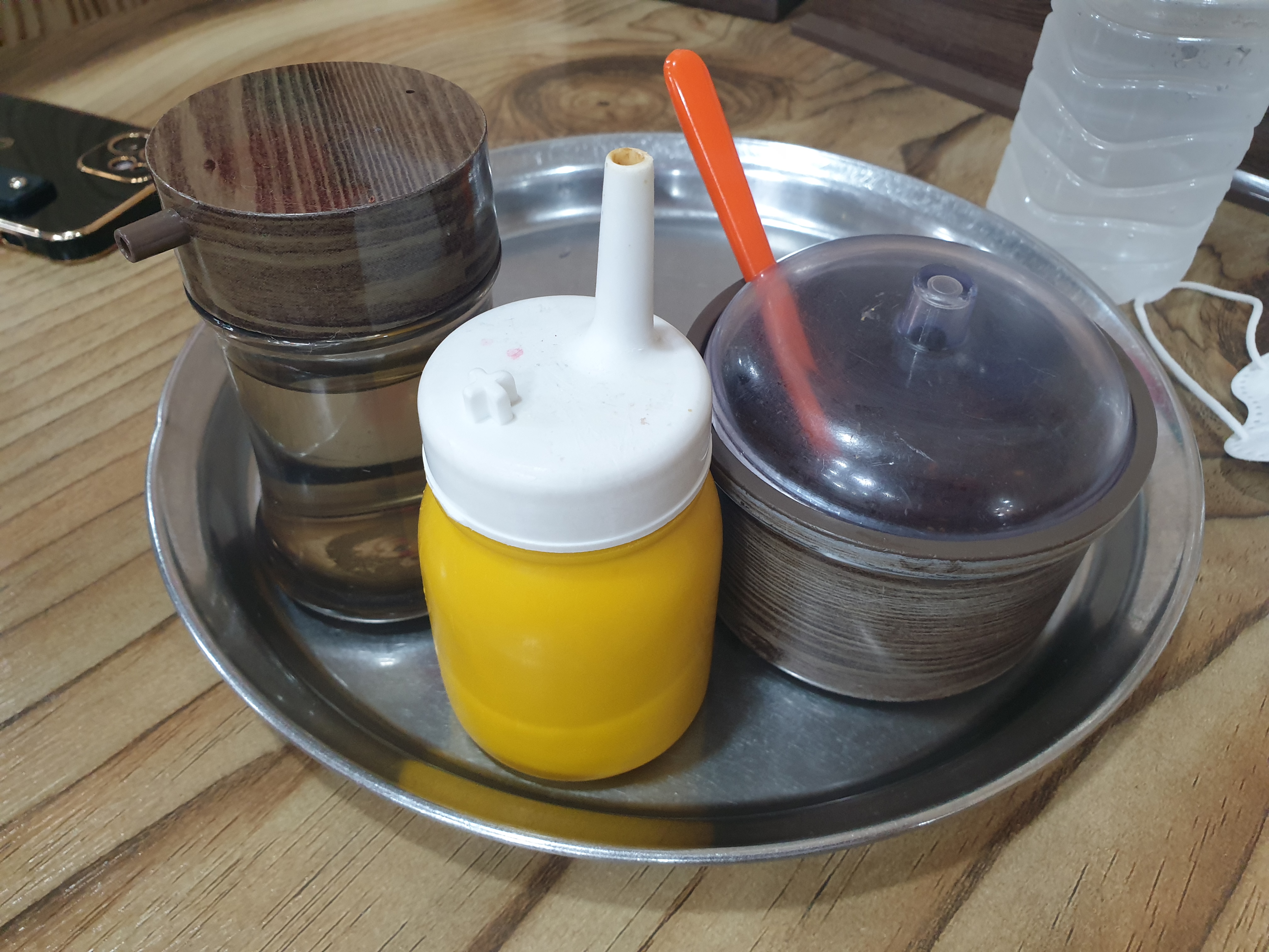 기호에 맞게 드시라고 겨자와 식초가 나오고