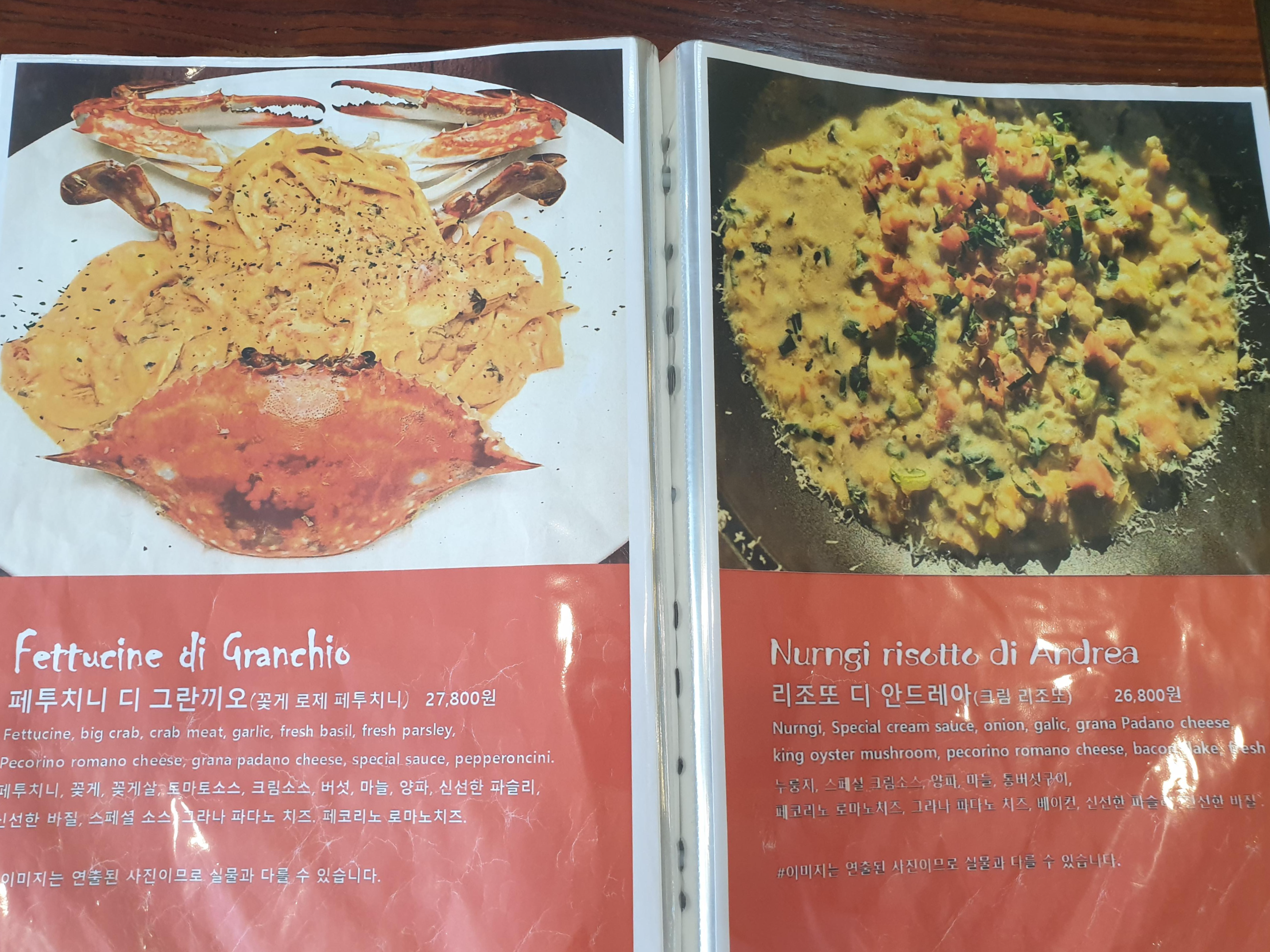 게가 보이는 페투치니 디 그란끼오도 많이 먹어요