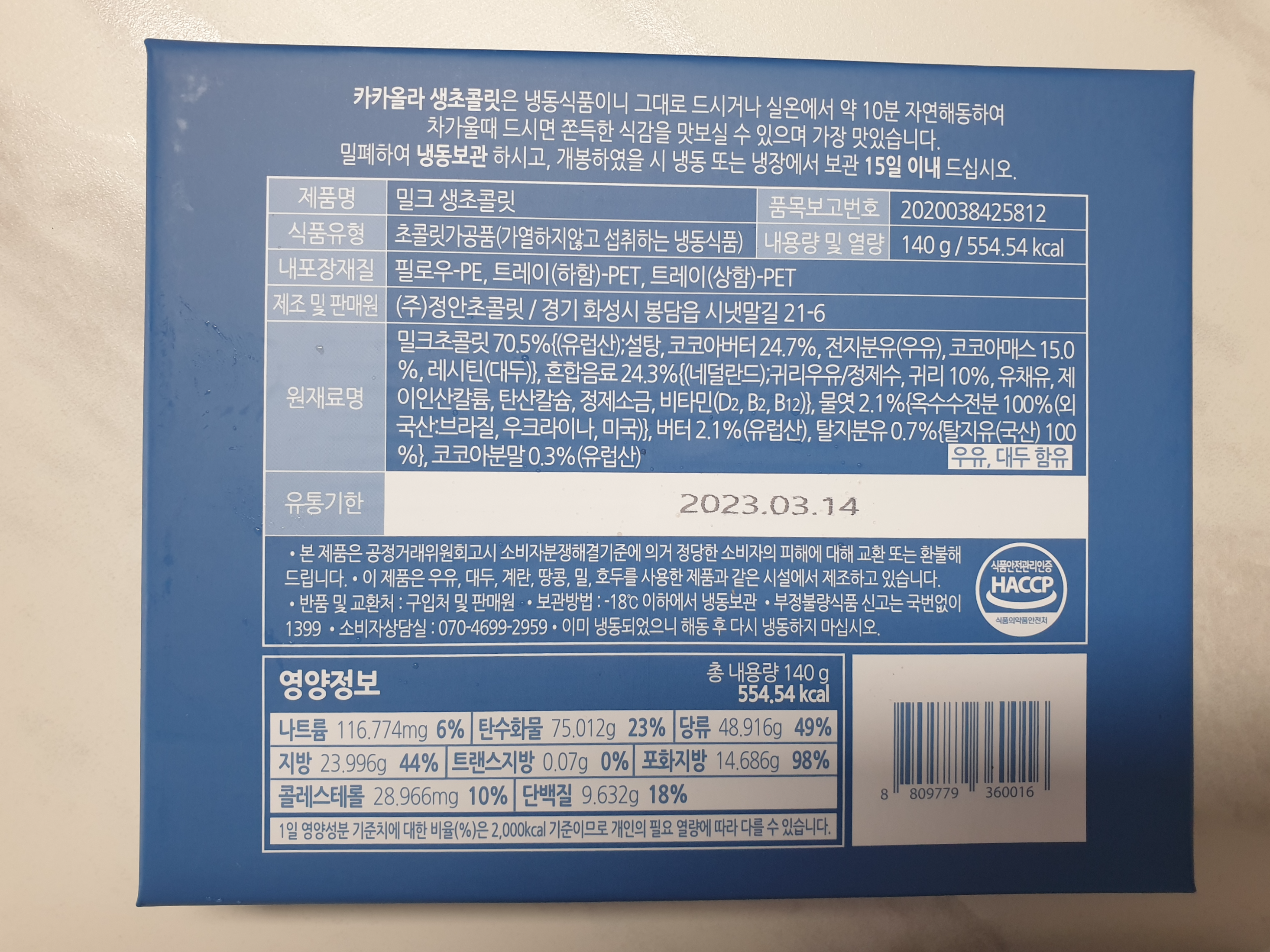 카카오 38.2% 밀크초콜릿, 유럽산을 썼네요