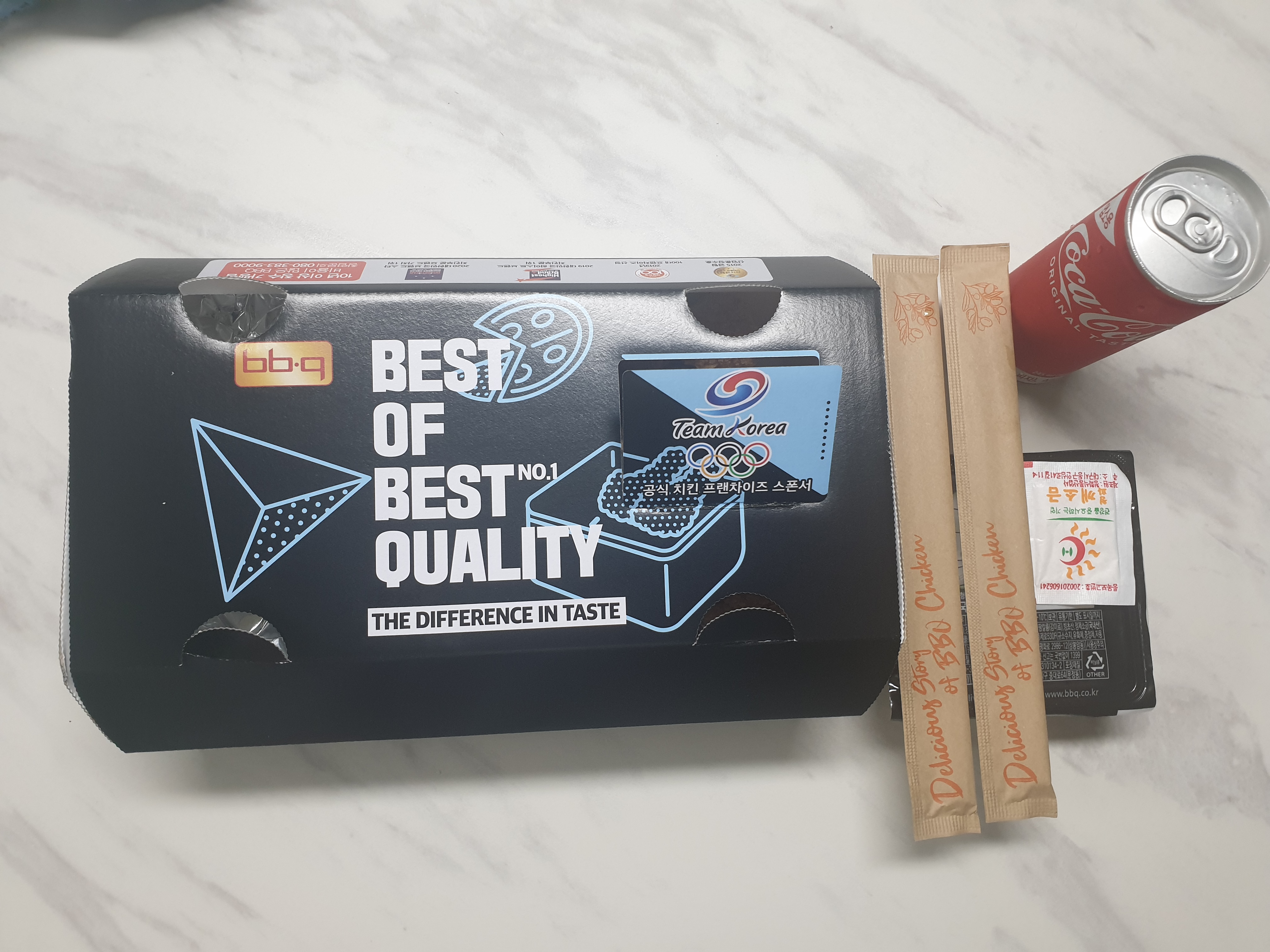 포장해서 오면 빠른 BBQ 치킨을 시켜봐요