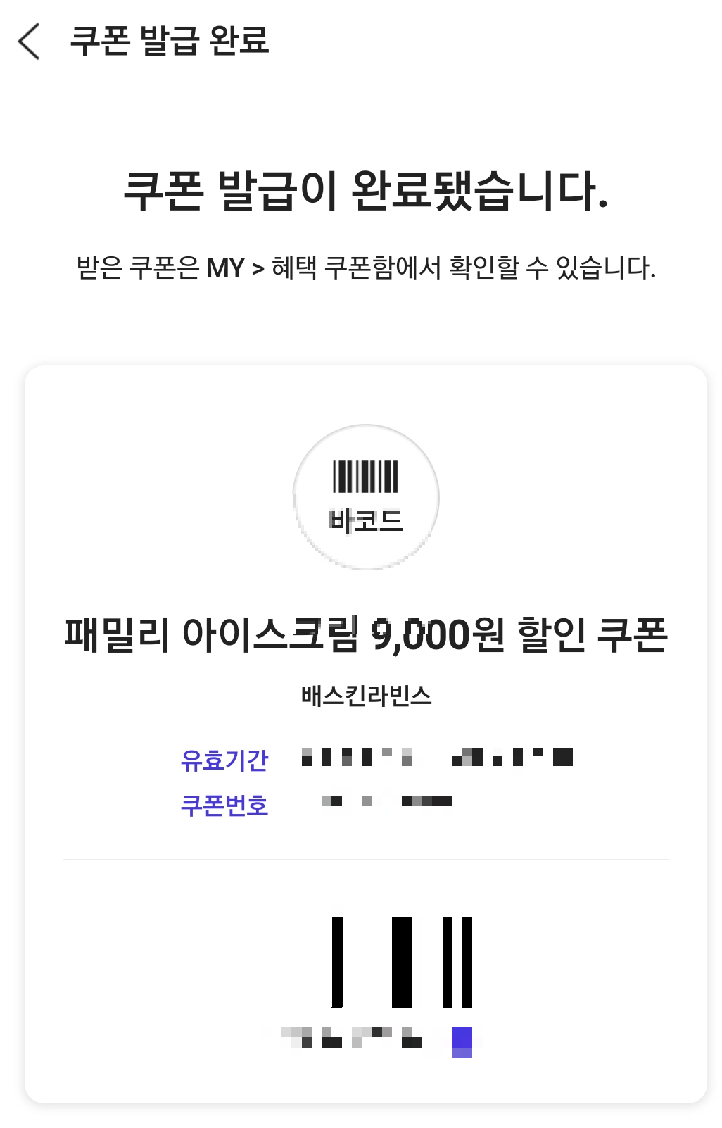 배스킨라빈스 31에서 VIP 쿠폰 이용을 해서