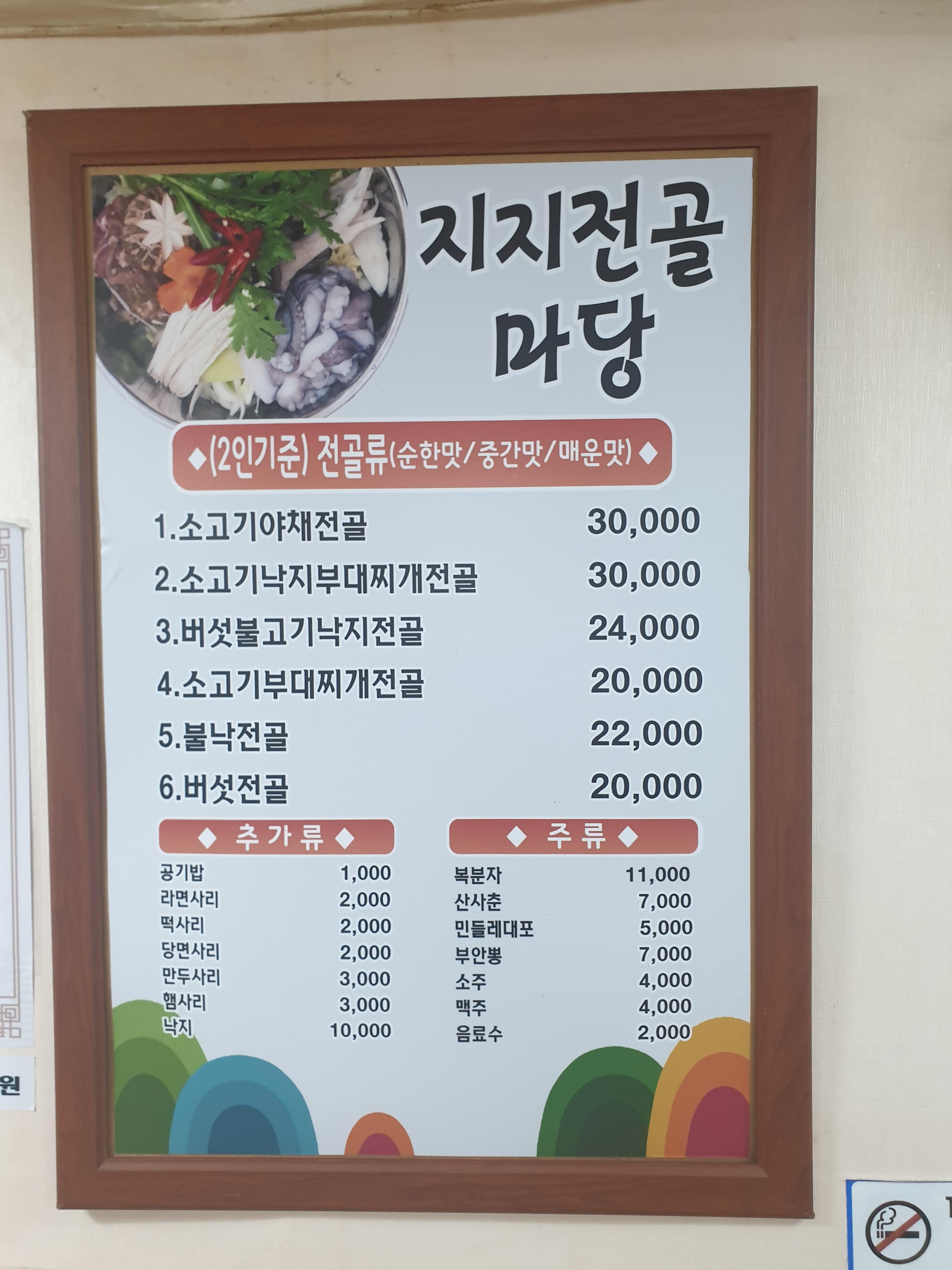 지지전골 마당은 이름 그대로 전골만 판매해요