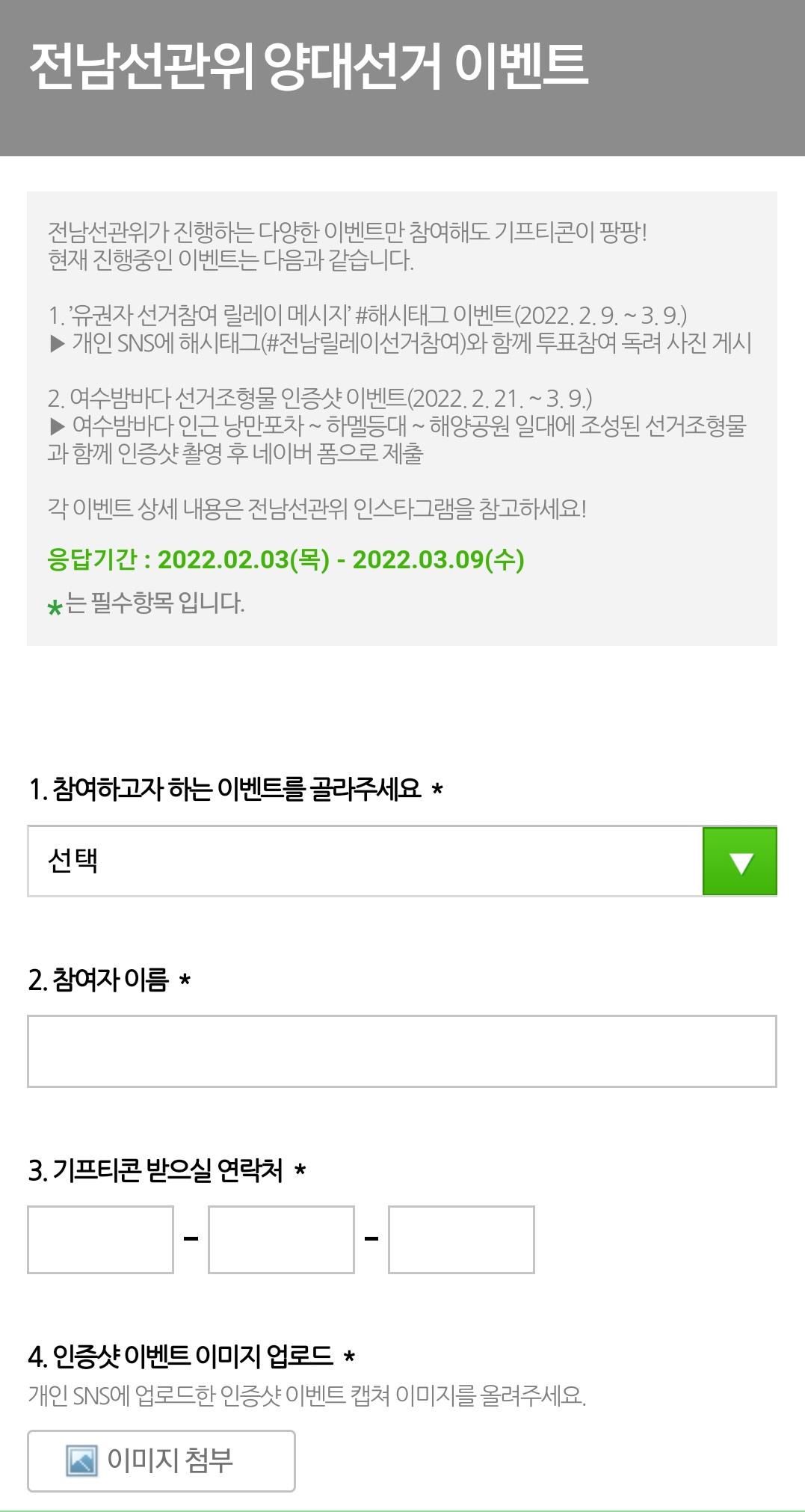 제20대 대통령 선거 전남선관위 기프티콘 이벤트