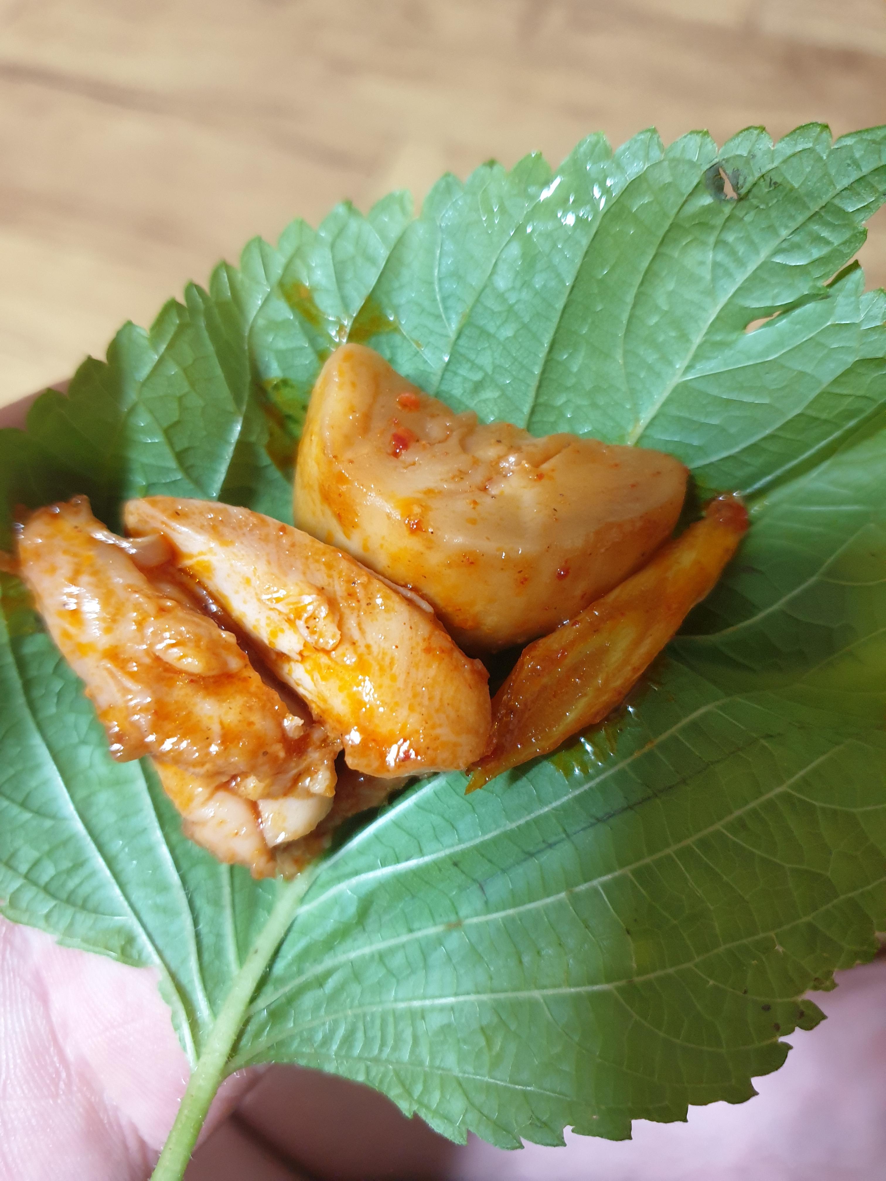쌈을 싸드리려고 깻잎에 하나 둘 올렸는데..