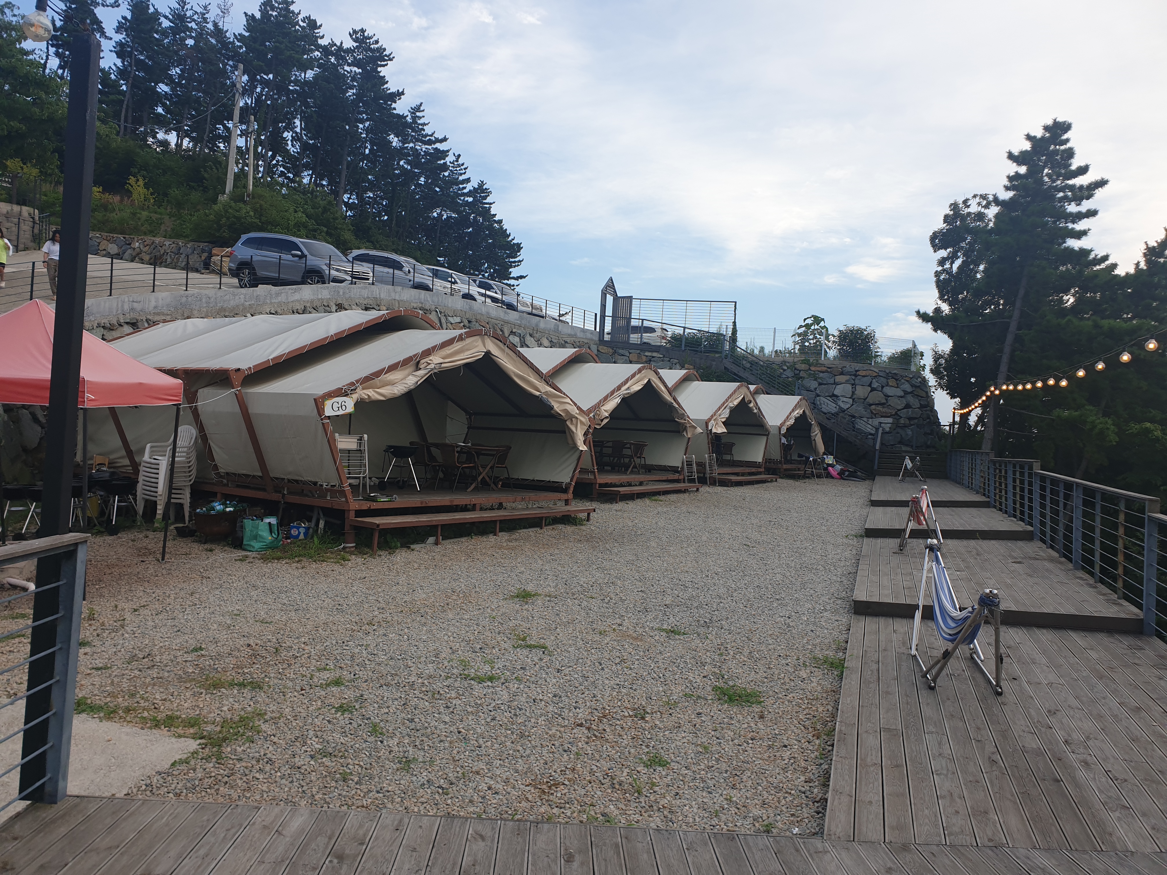 글램핑장은 가장 밑에 있어서 걸어내려 가는데