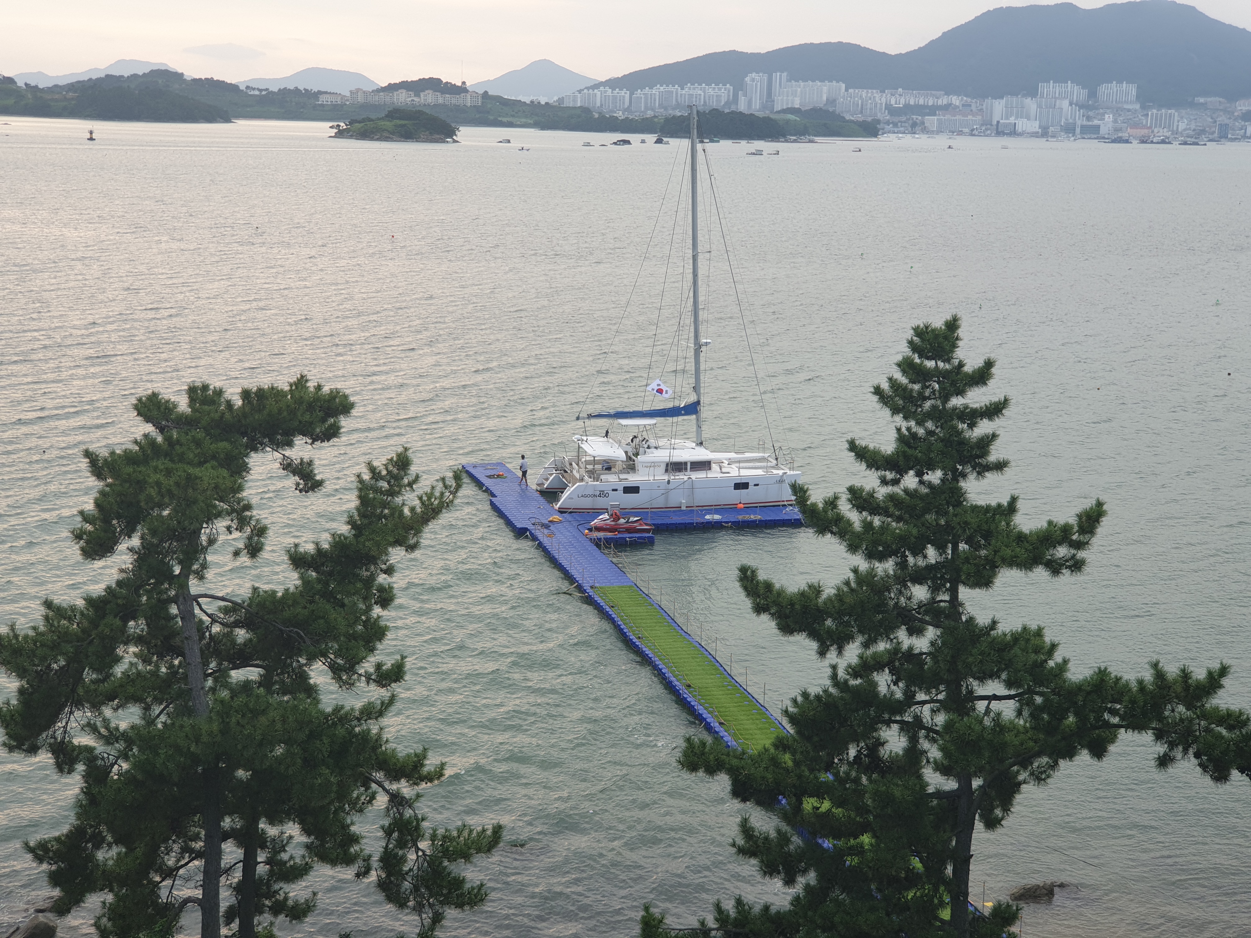 바로 앞바다에 요트가 있었는데요