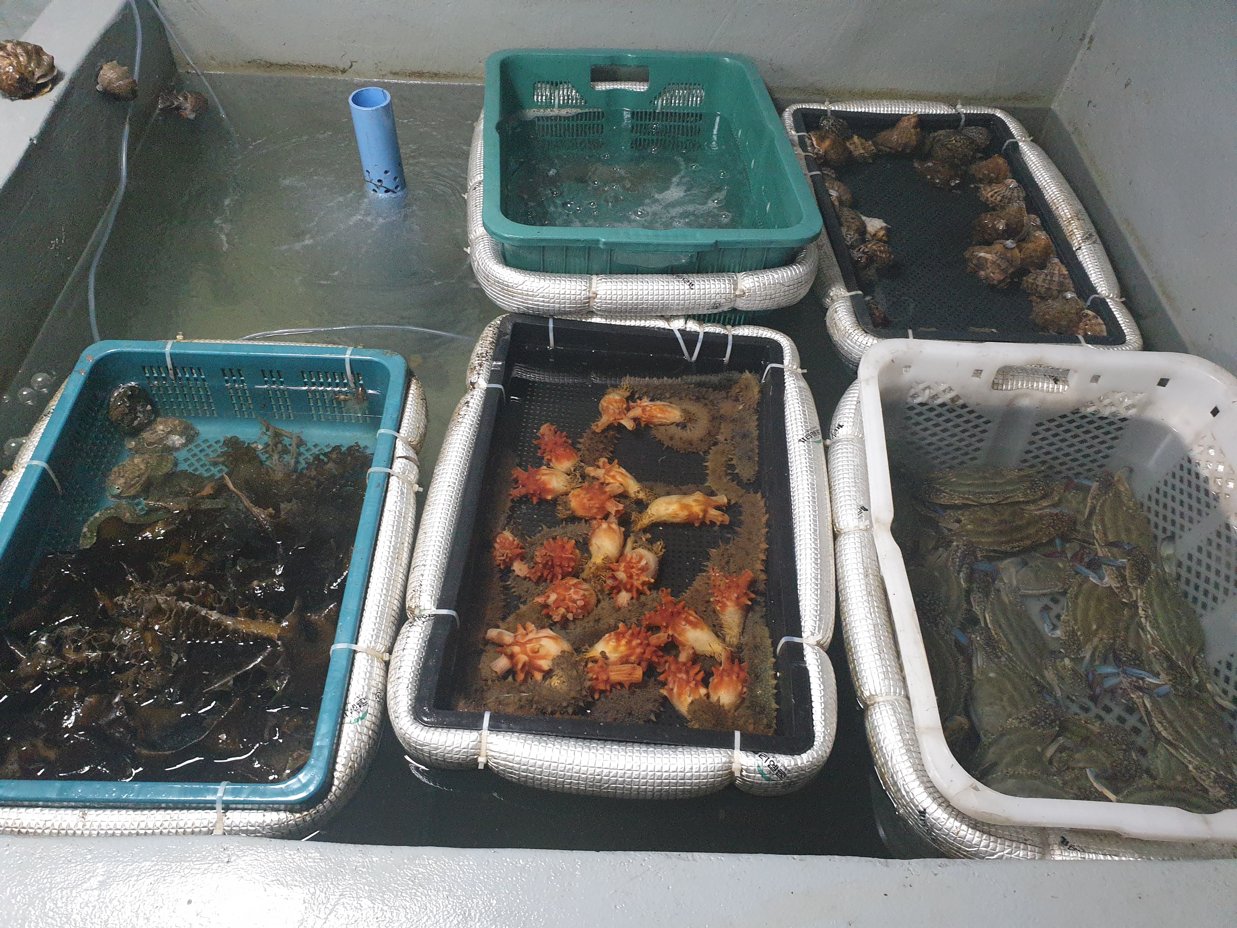 전복, 해삼, 멍게, 꽃게를 판매하고 있어요