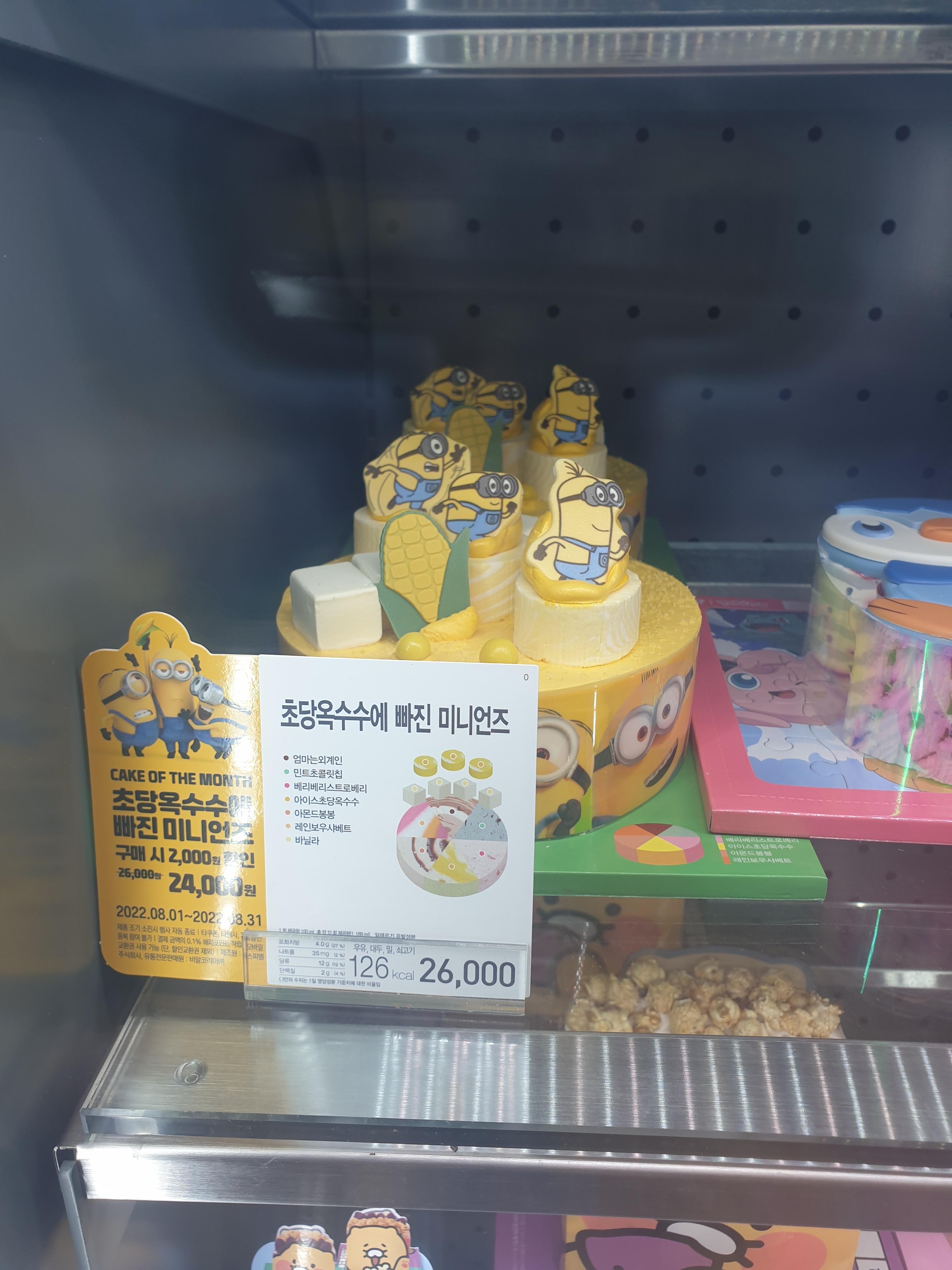이달의 케이크인 초당옥수수에 빠진 미니언즈도 있고