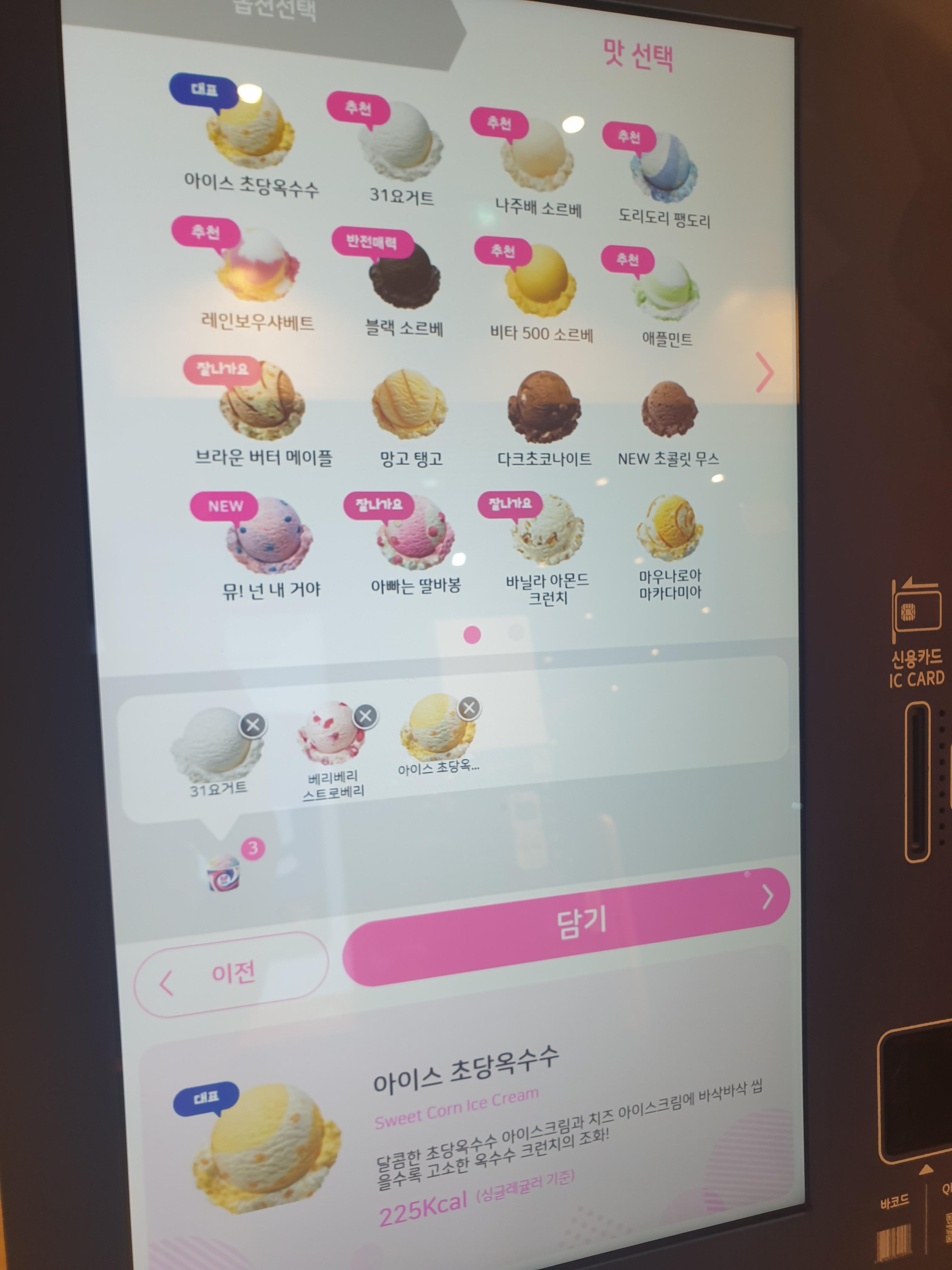 이달의 맛 아이스 초당옥수수를 골라봅니다