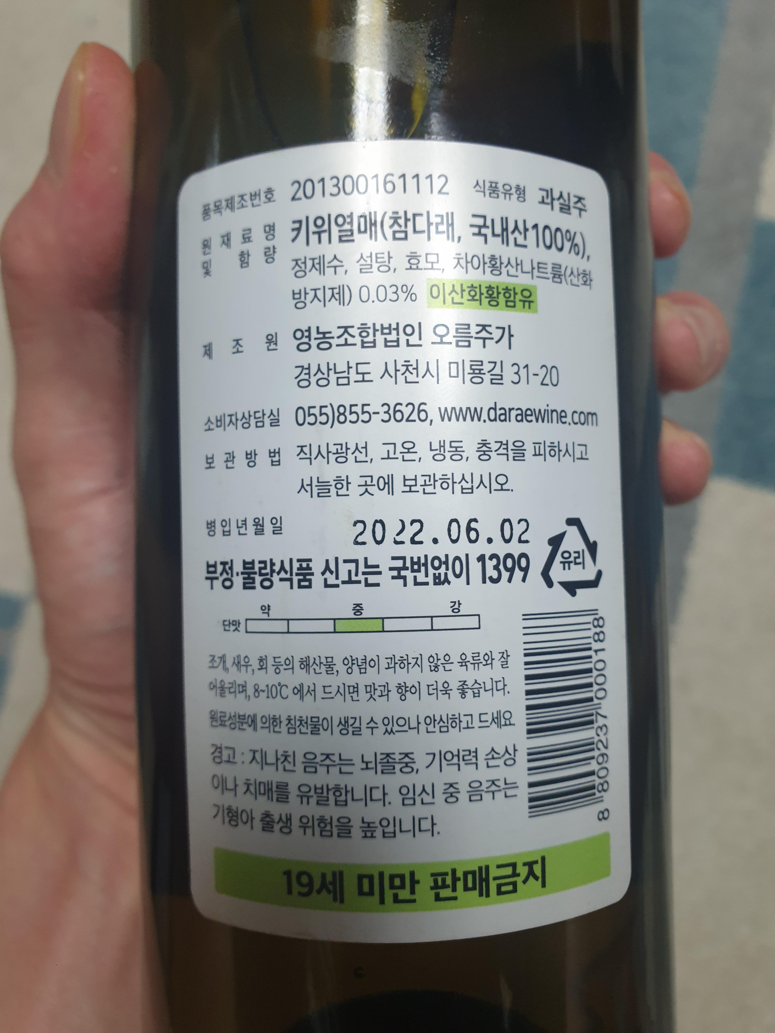 오늘의 전통주_7004S 키위 와인, 8%, 22,000원