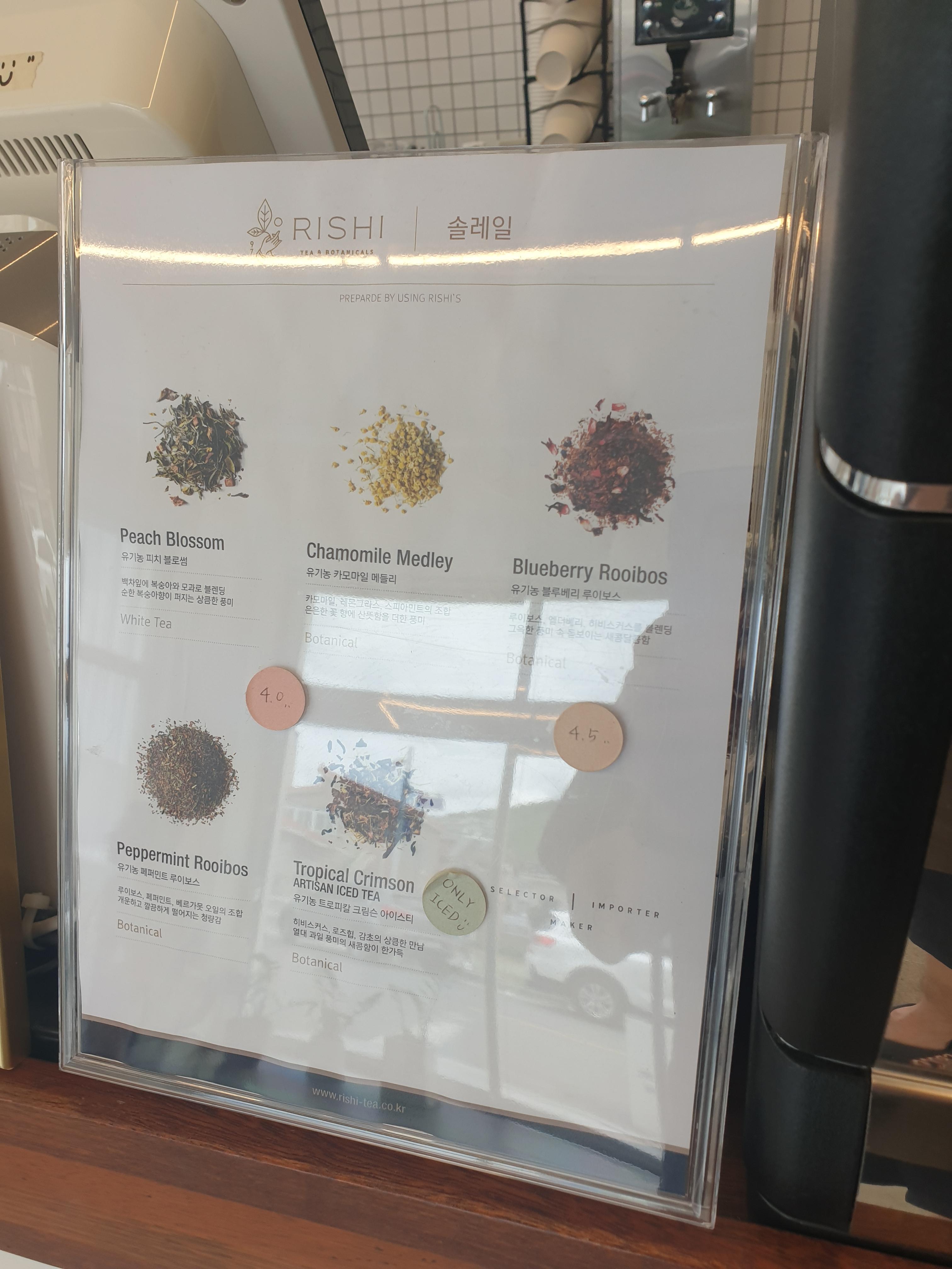 아이스티와 에이드와 ROSHI의 다양한 티도 있답니다