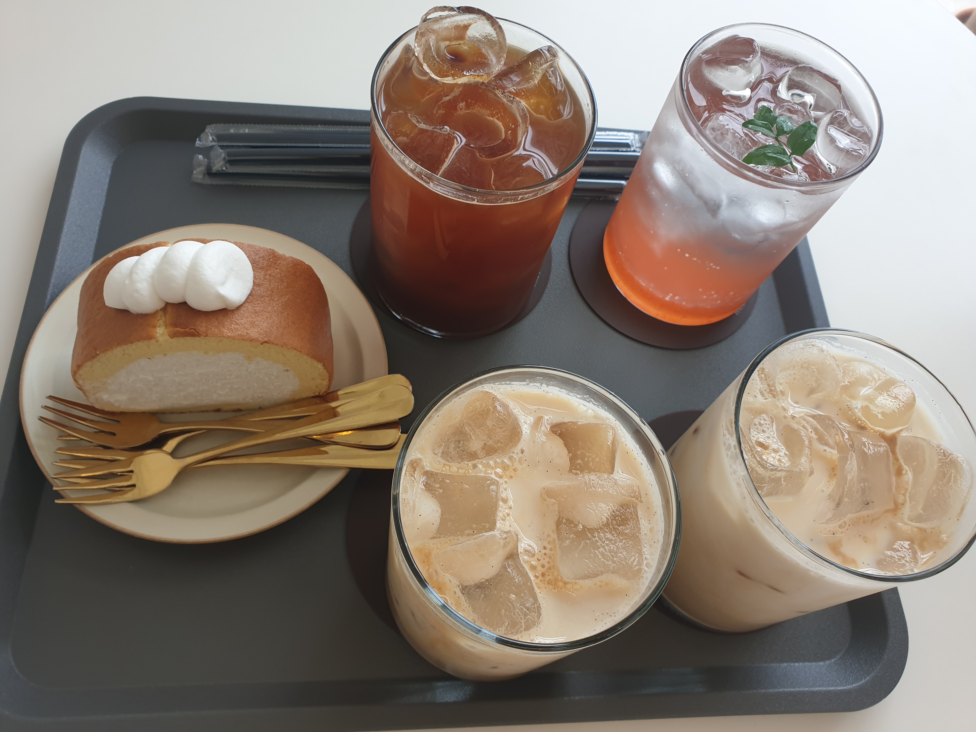 롤케익 하나에 각자 먹고 싶은 음료 하나씩