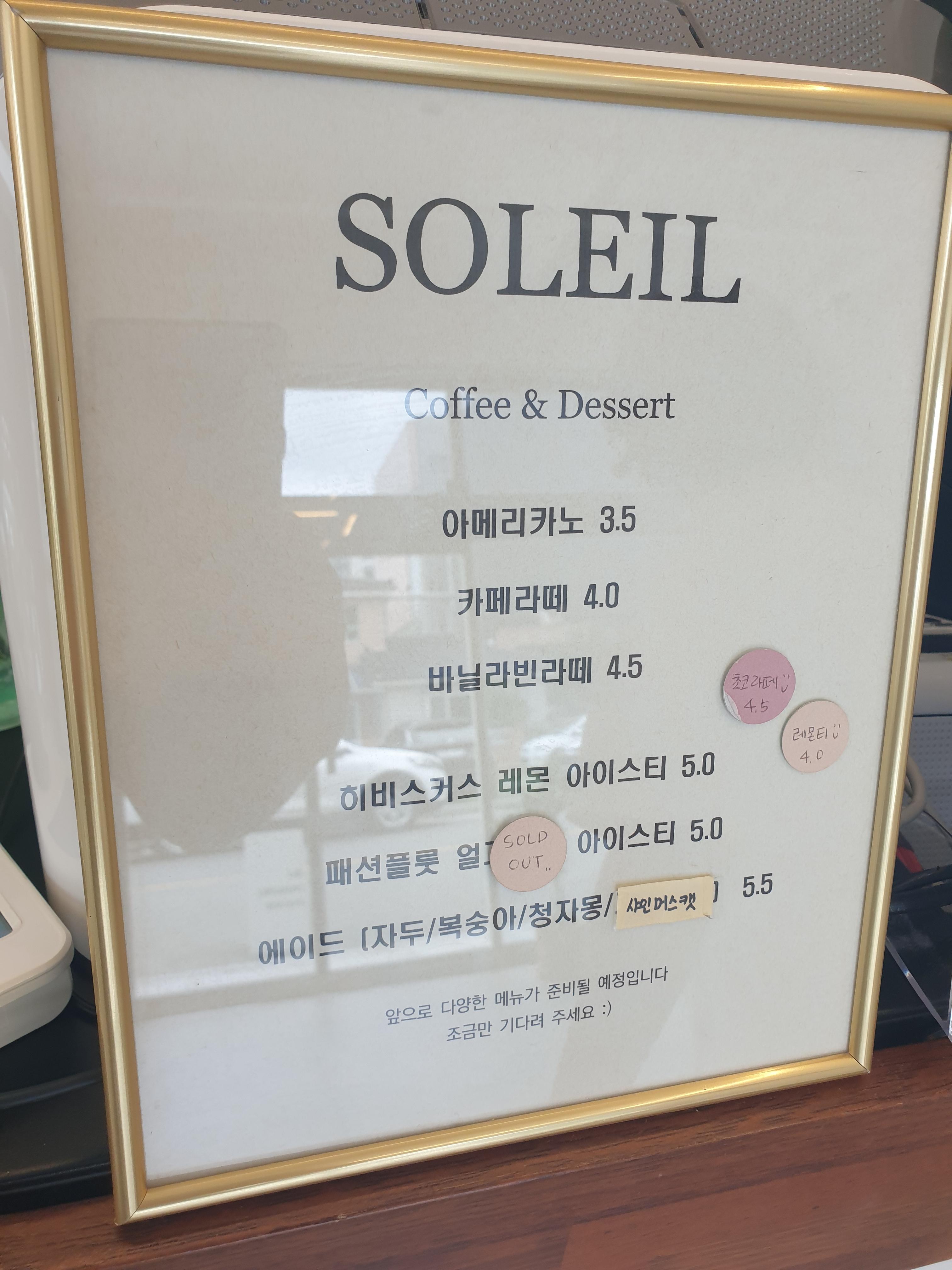 솔레일(Soleil)에서 맛있는 음료와 디저트 어떠세요?