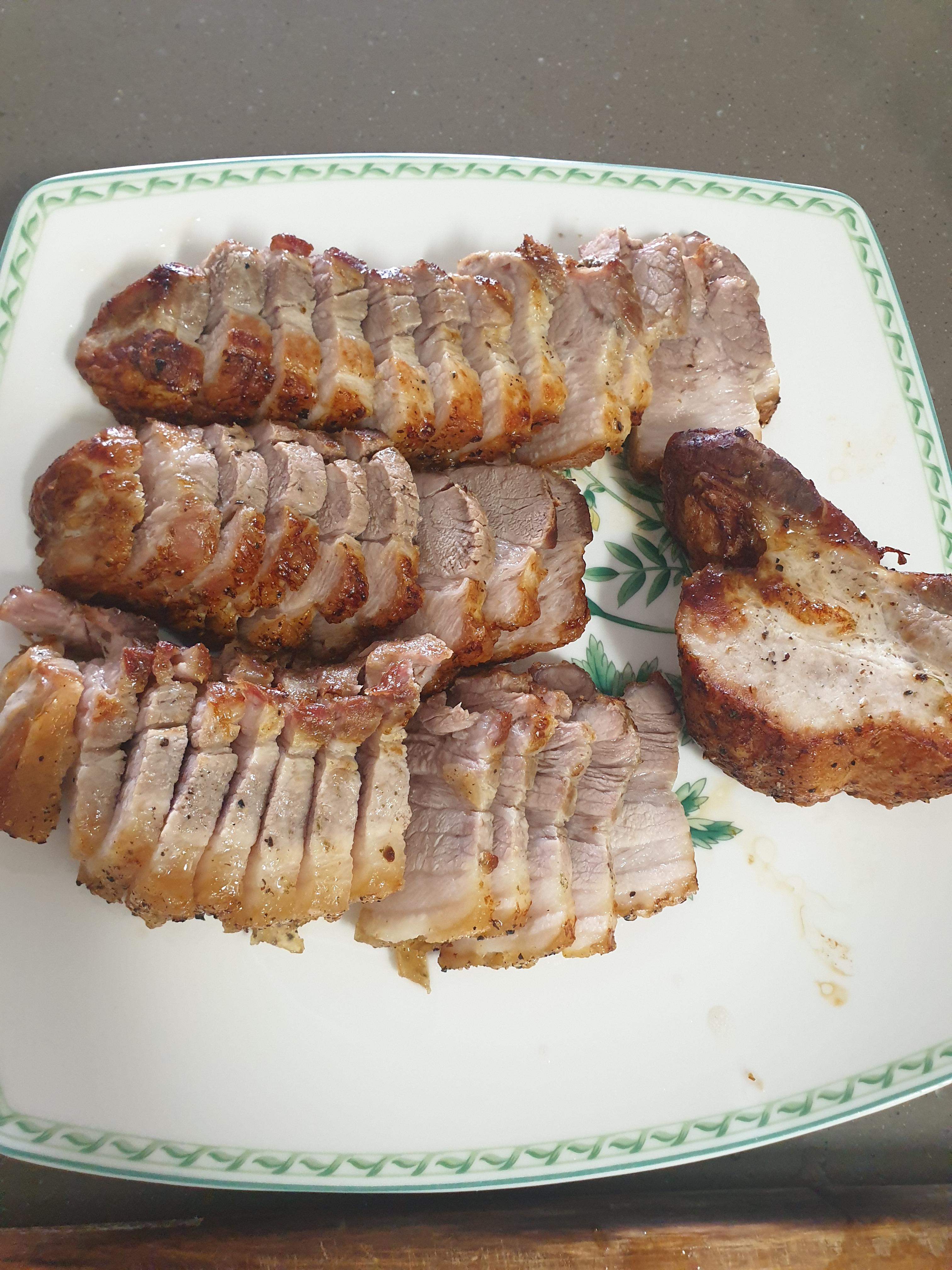 동생의 멋진 시즈닝 이후에 제가 썰어서 먹구