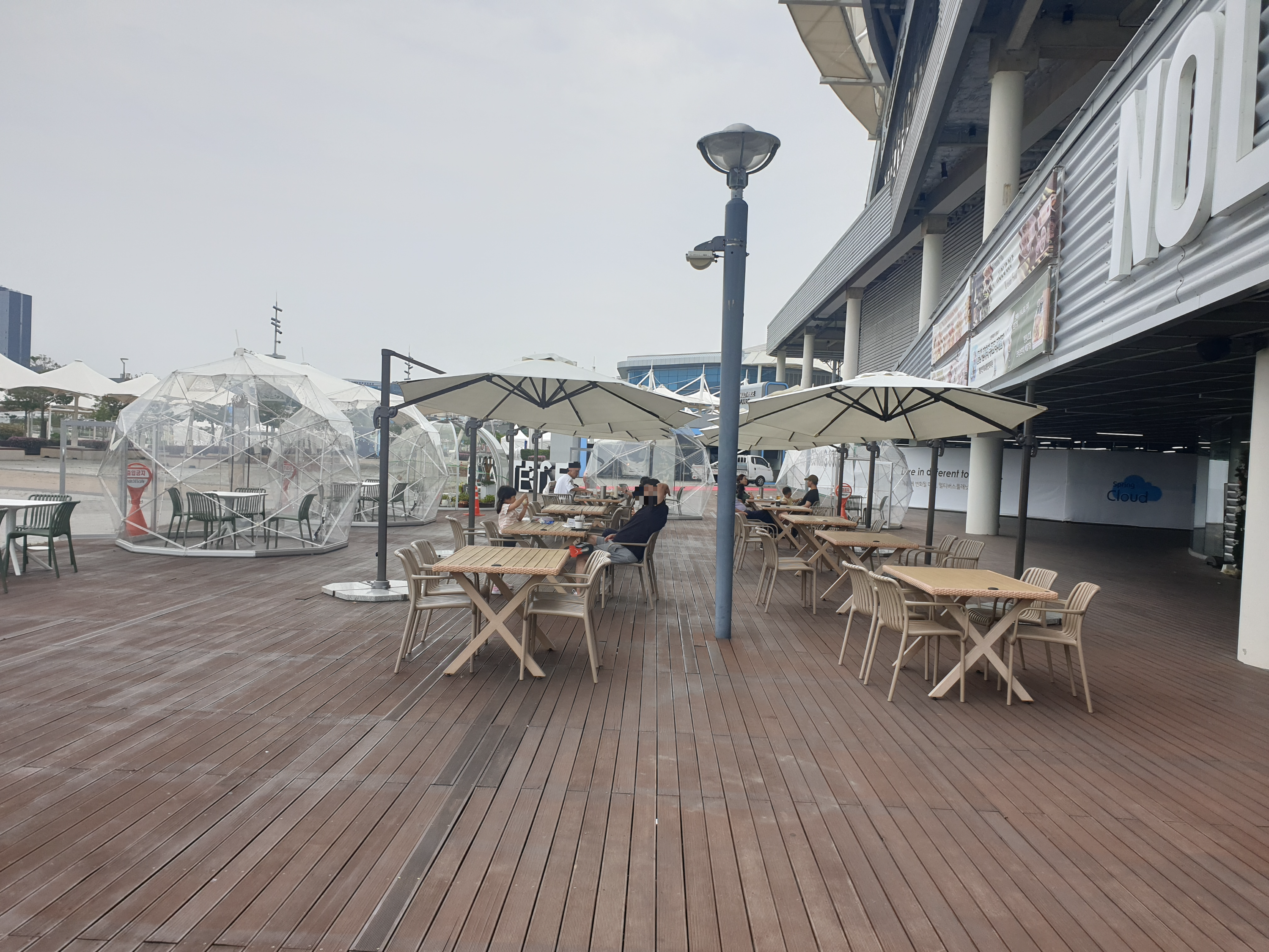 밖에 나가보니 돔 안에서 먹는 좌석도 있구