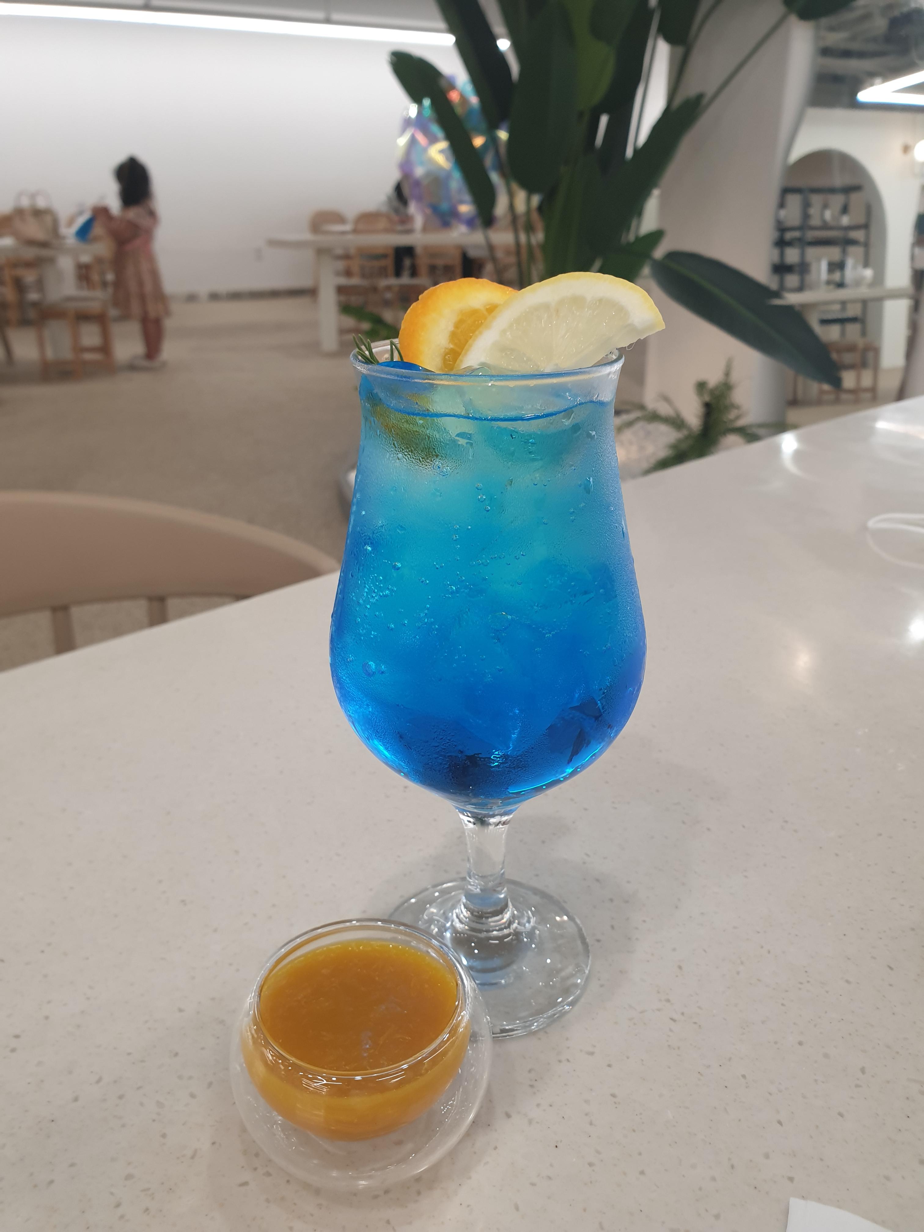 음료는 시그니처 블루 오렌지 에이드!