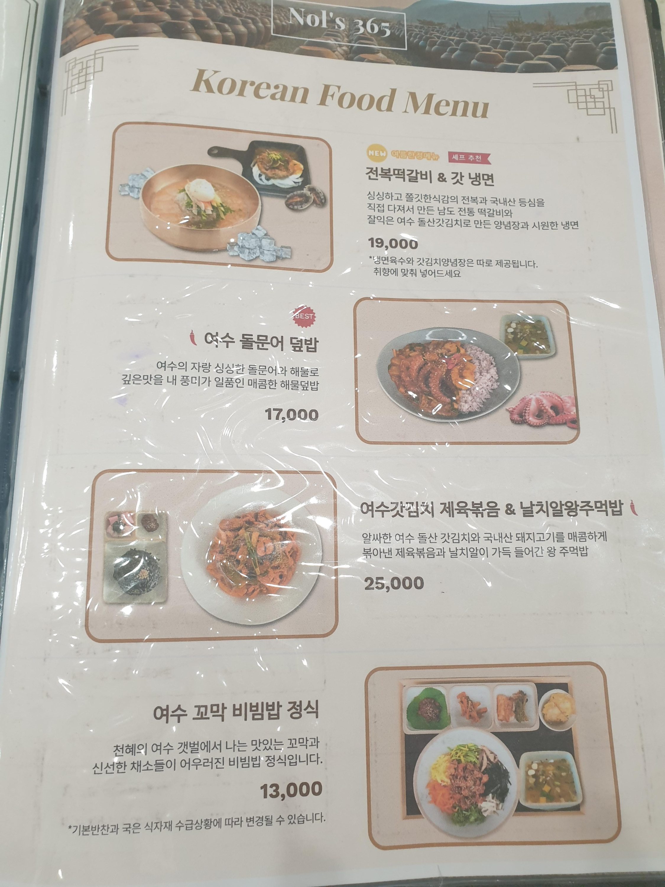 음식도 다양하고 여수 특산물들이 들어가 있구