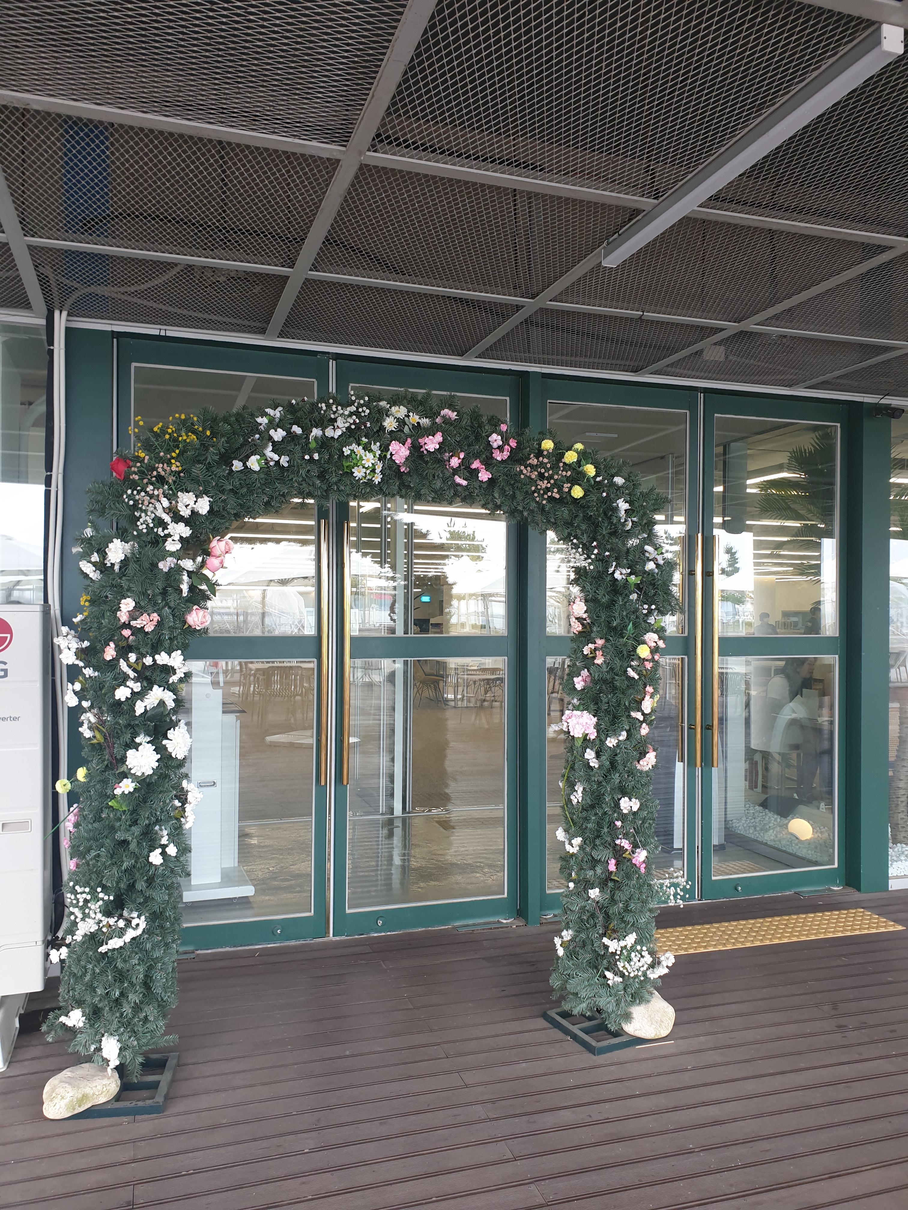 가게 앞에 있는 아치형 조형물에서도