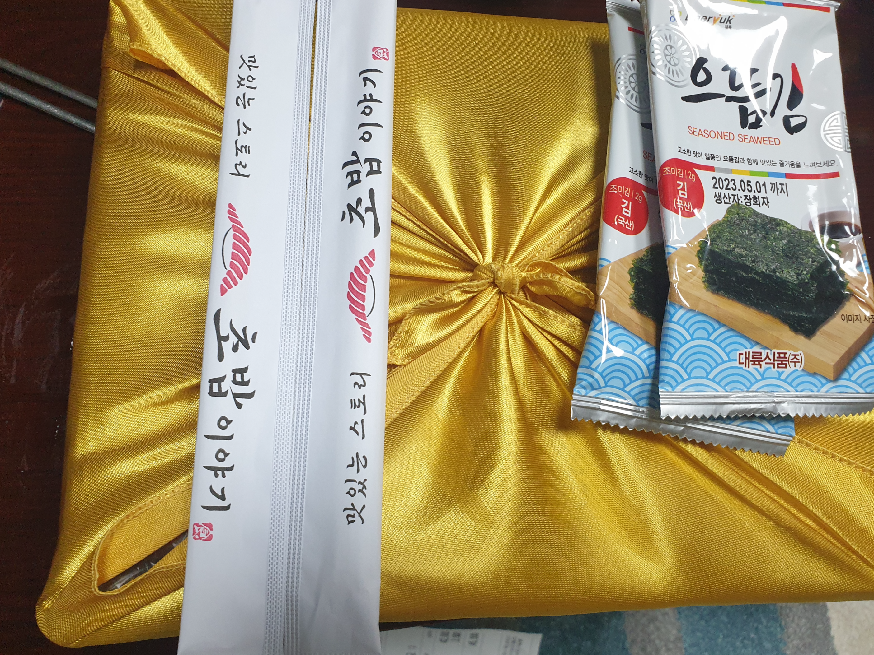 초밥 이야기라는 젓가락 포장지를 보고