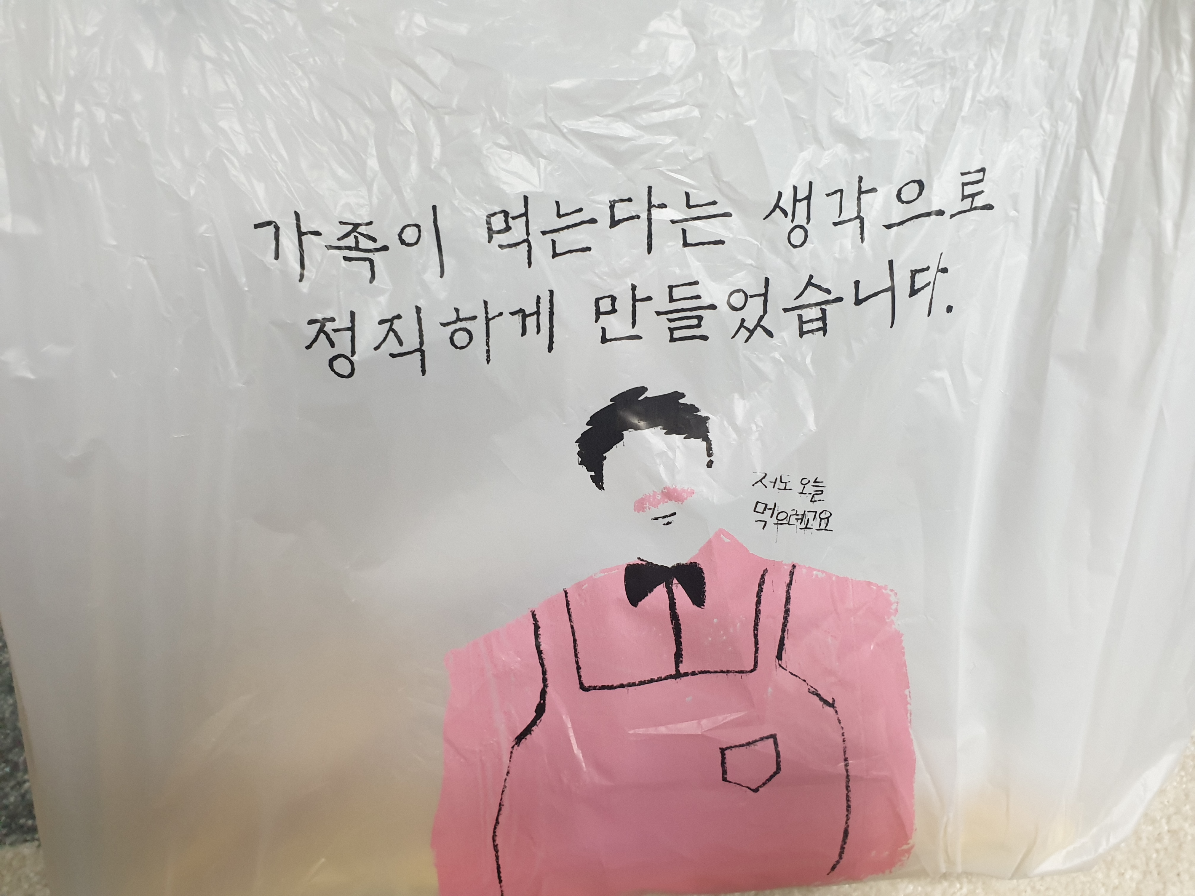 배달업체에서 봉투를 받아보니 적혀있는 글