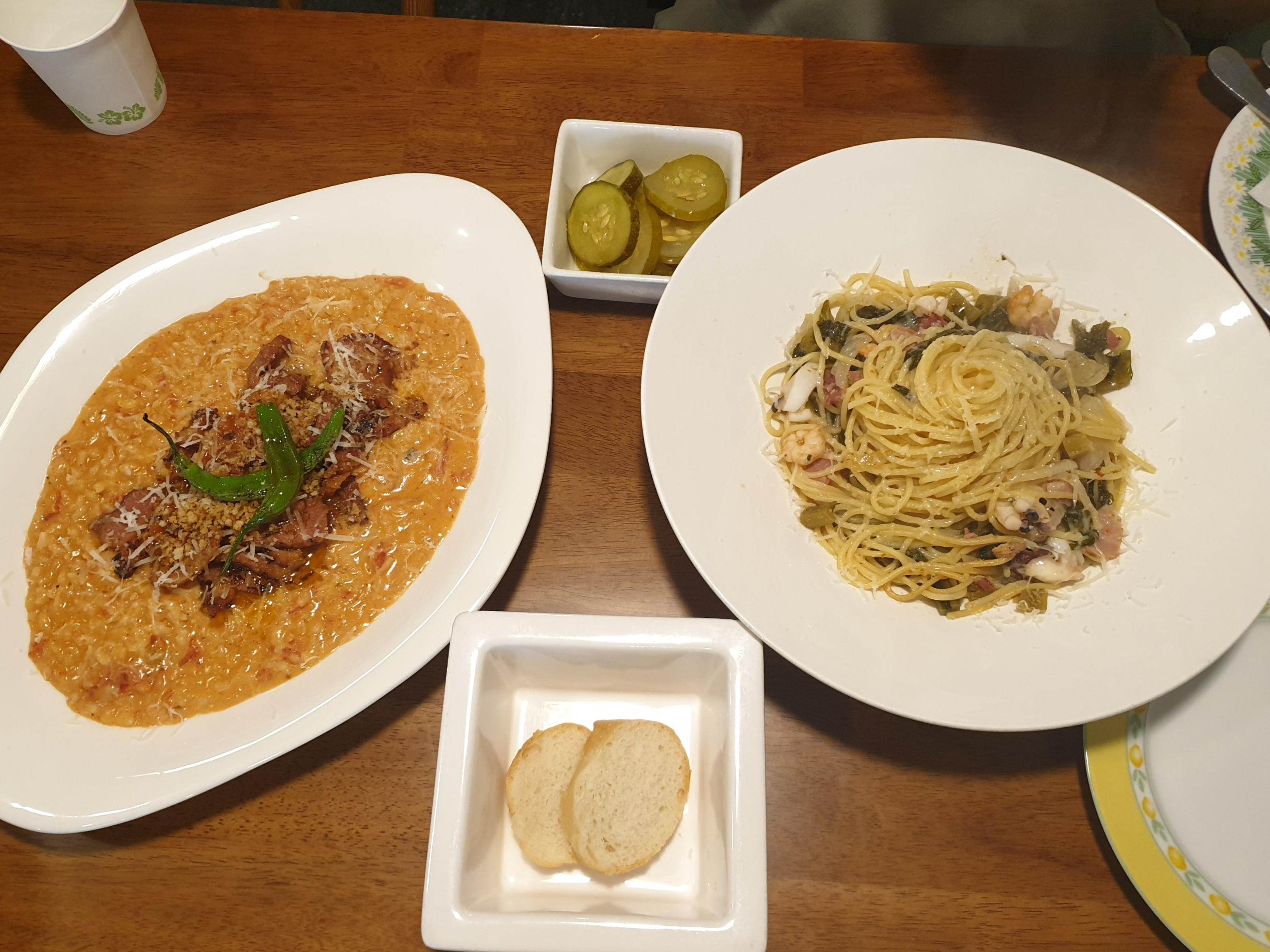 오일 파스타 하나와 밥을 먹고 싶어 리조또를 골라요