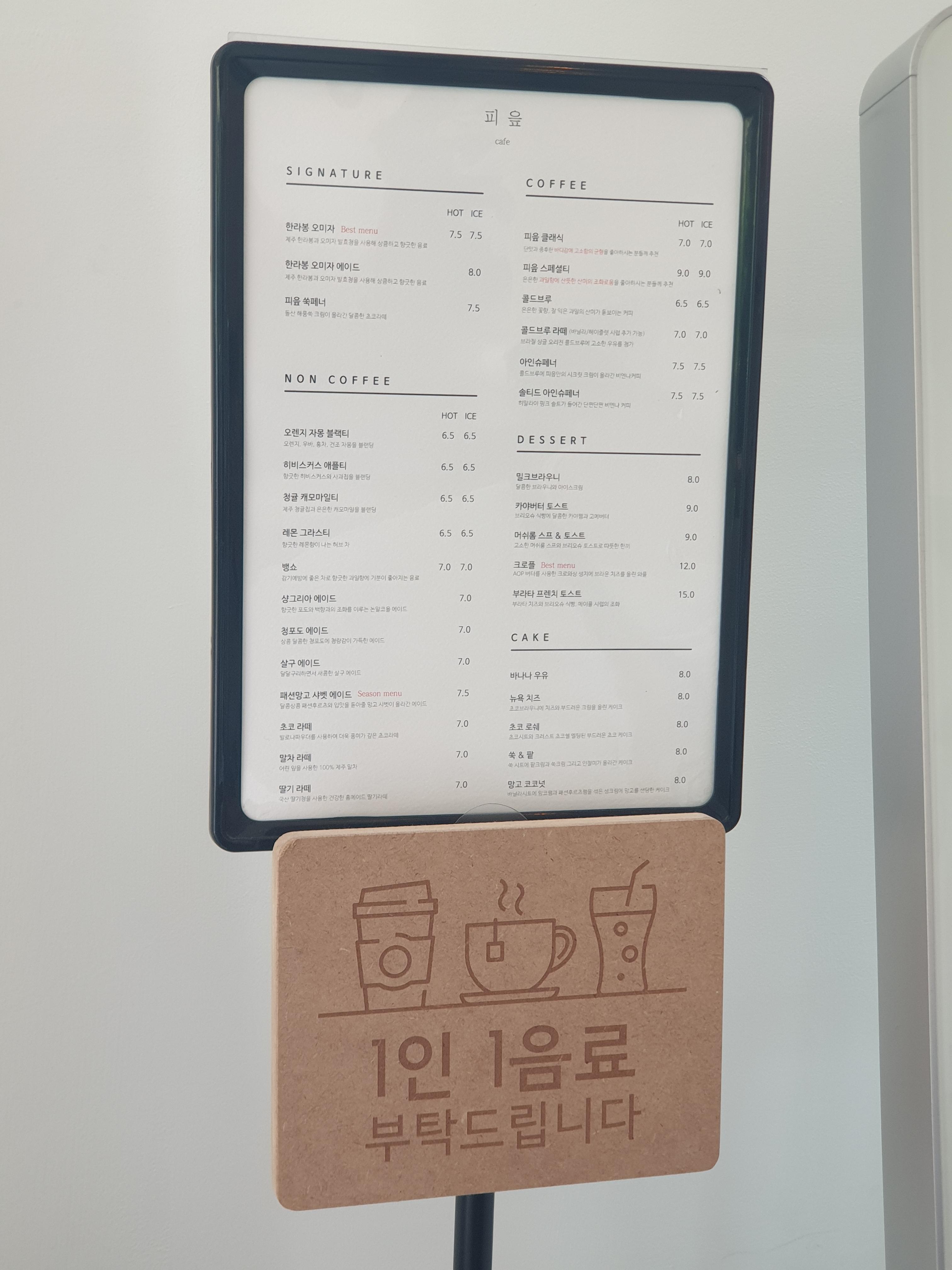 주차 후 피읖 카페 가는 길 표지판을 보고