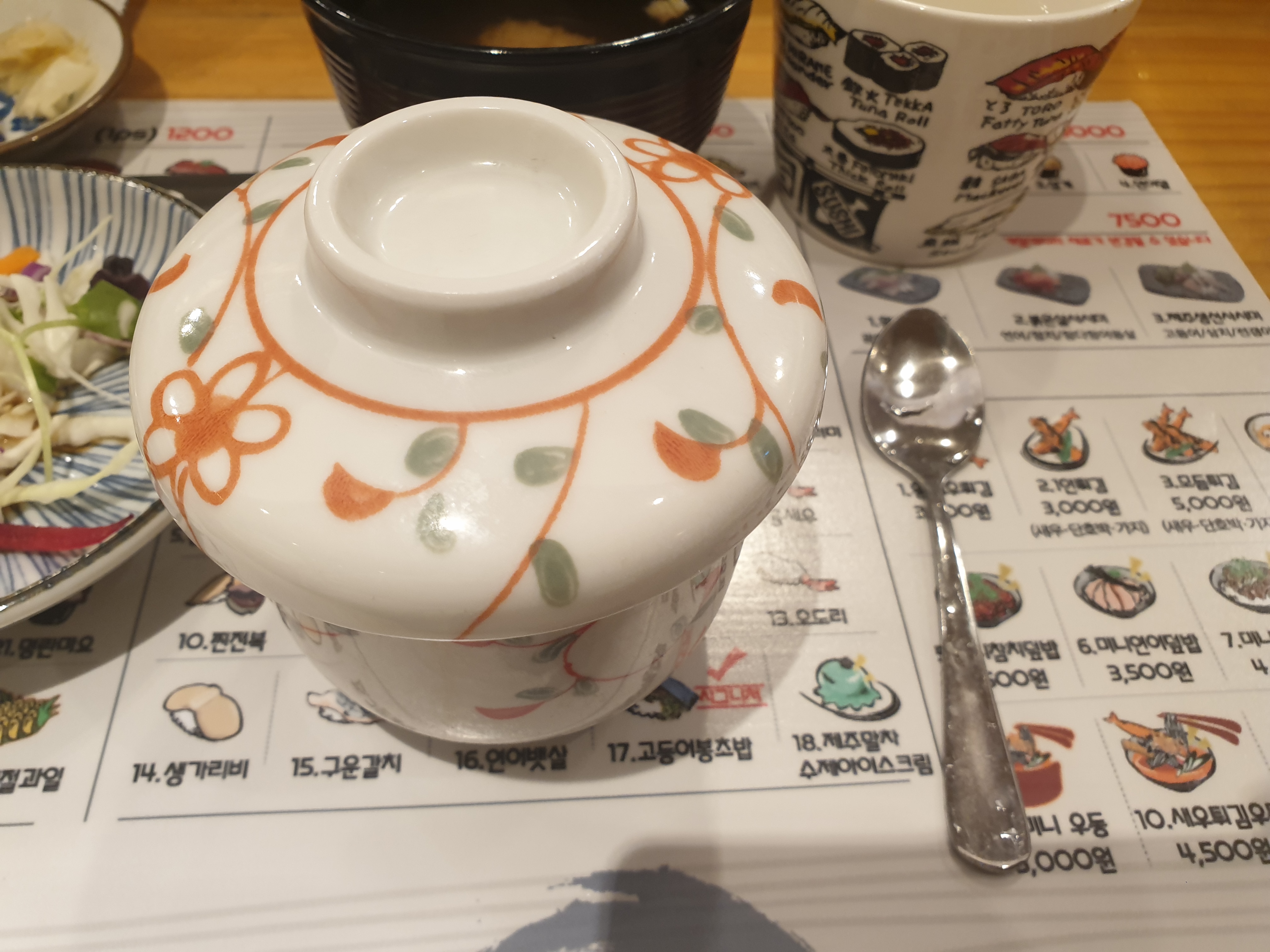 차완무시와 초밥 10 pcs, 튀김, 우동이 나와요