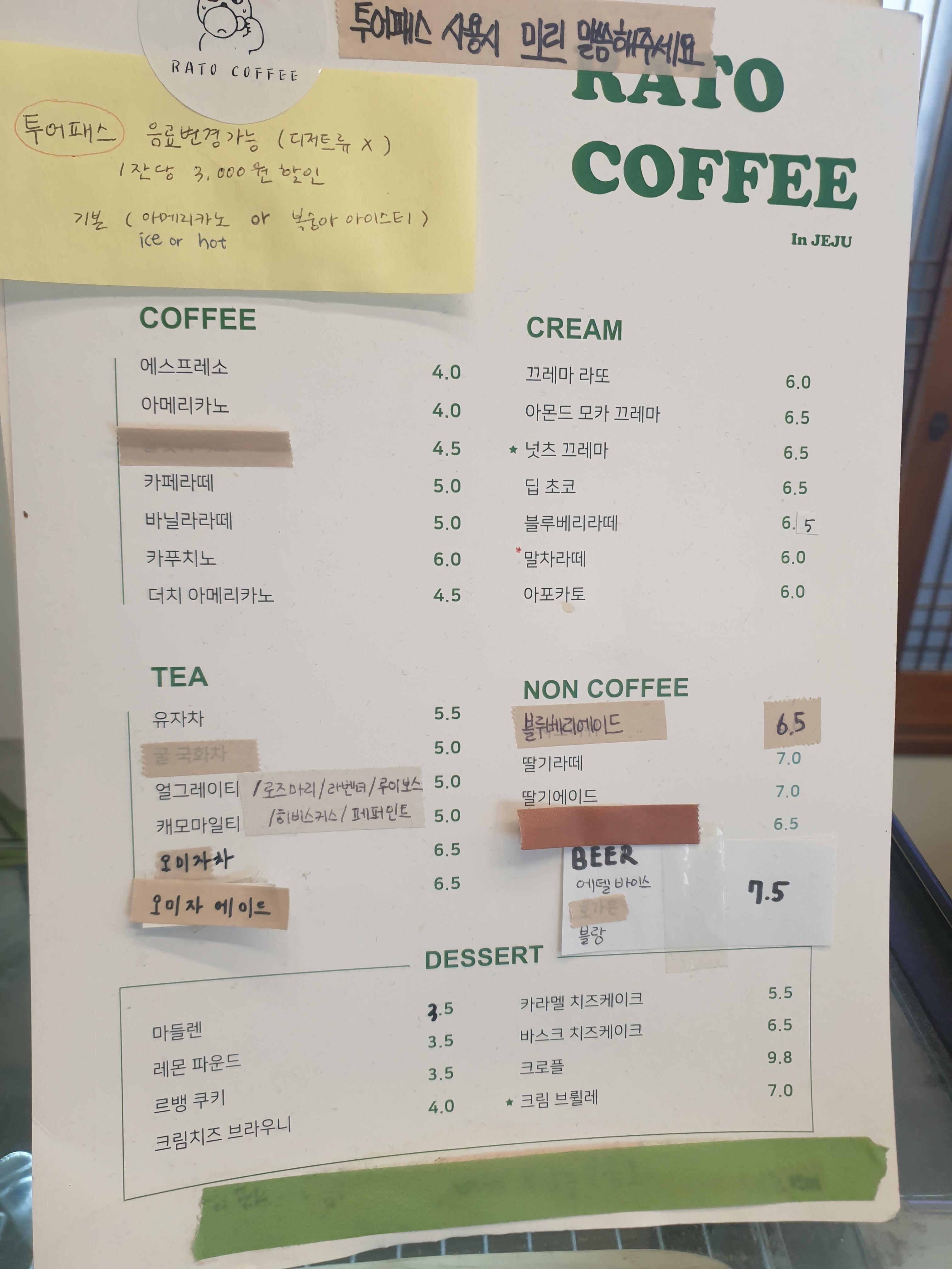 기본은 아이스티랑 커피가 되구