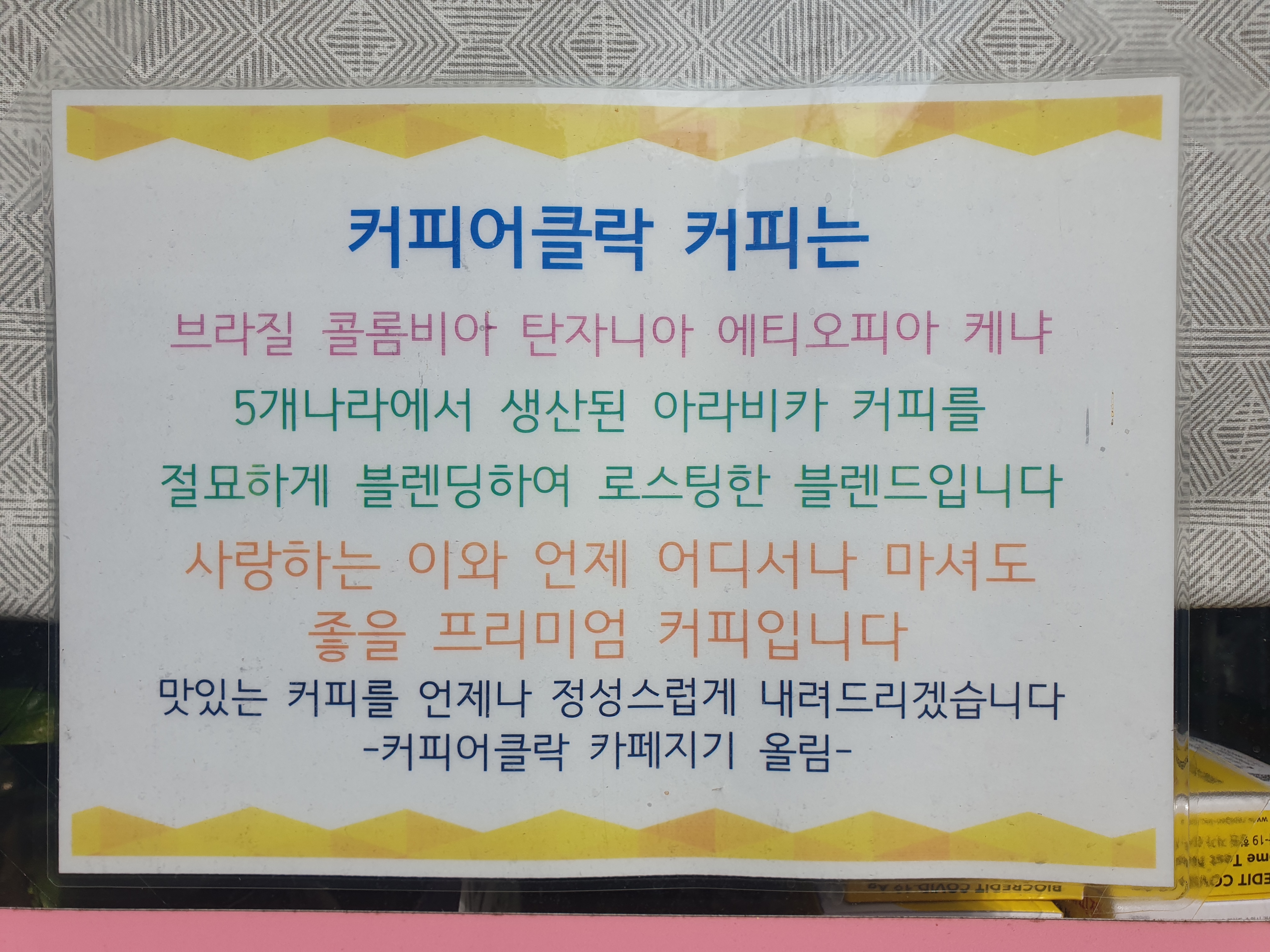 커피 어클락 커피는 5가지의 나라의 원두를