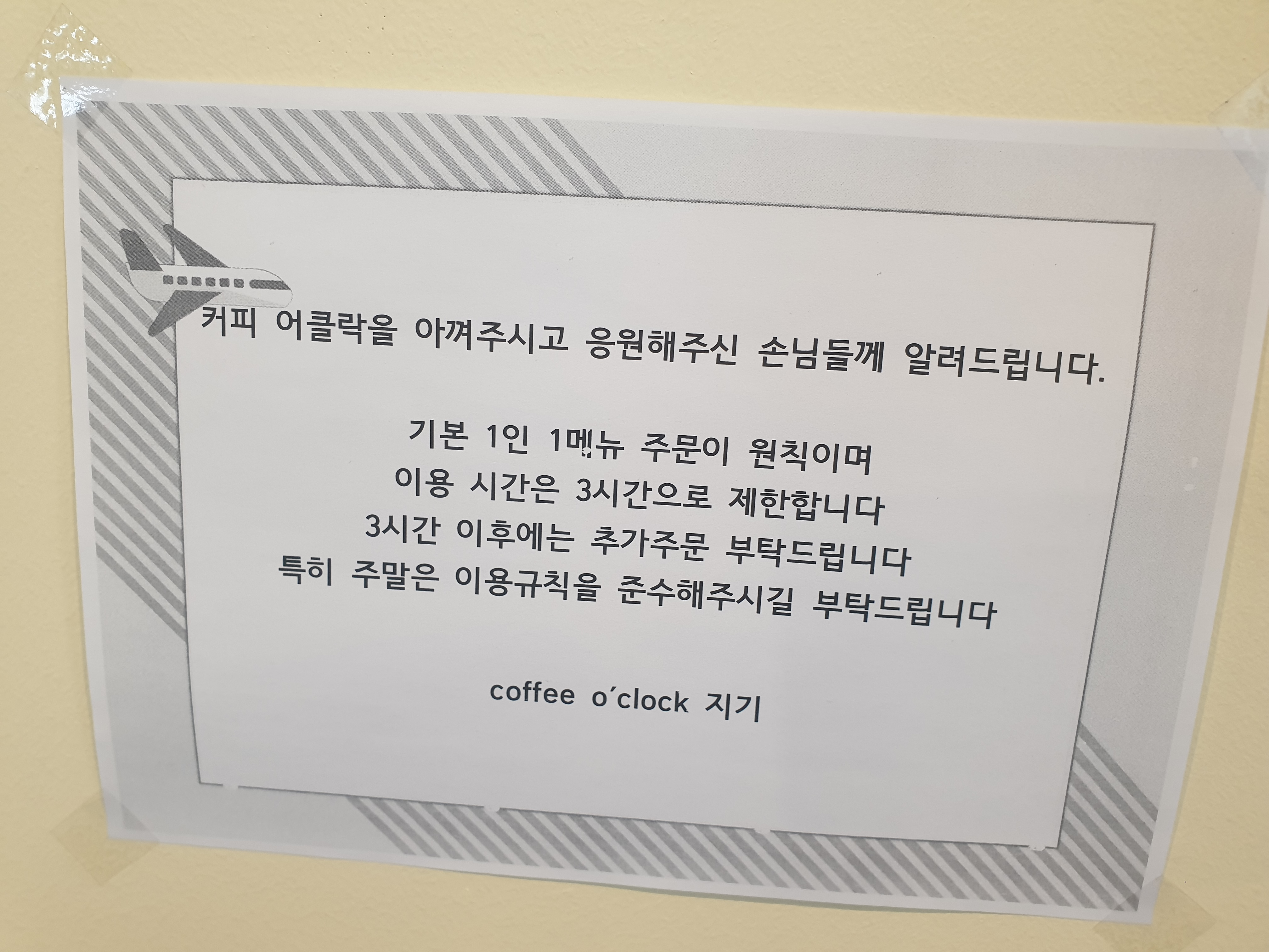커피어클락은 기본 1인 1 메뉴가 원칙이고