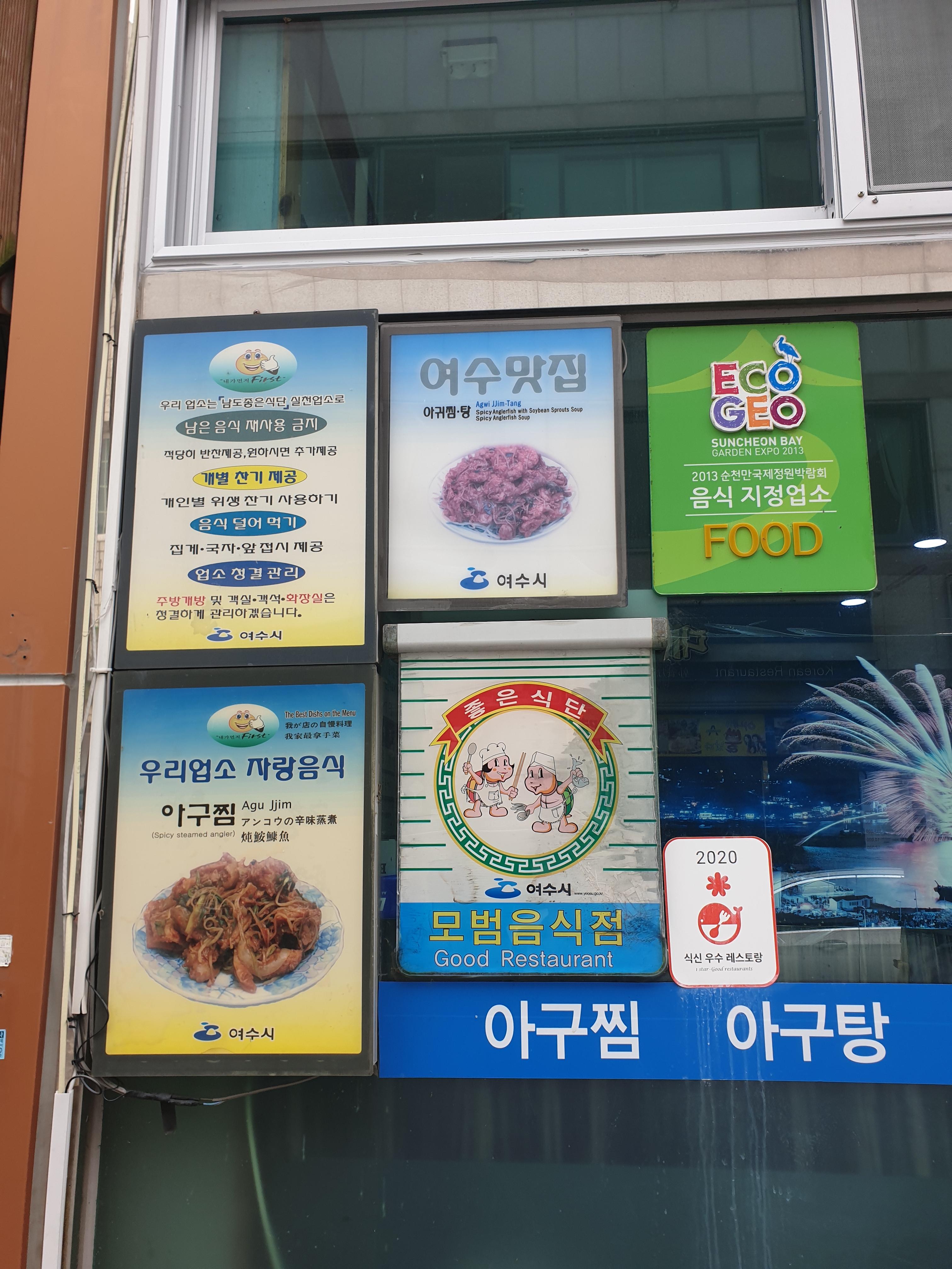 모범 음식점도 있구 여수시에서 여수 맛집 인증도 있고