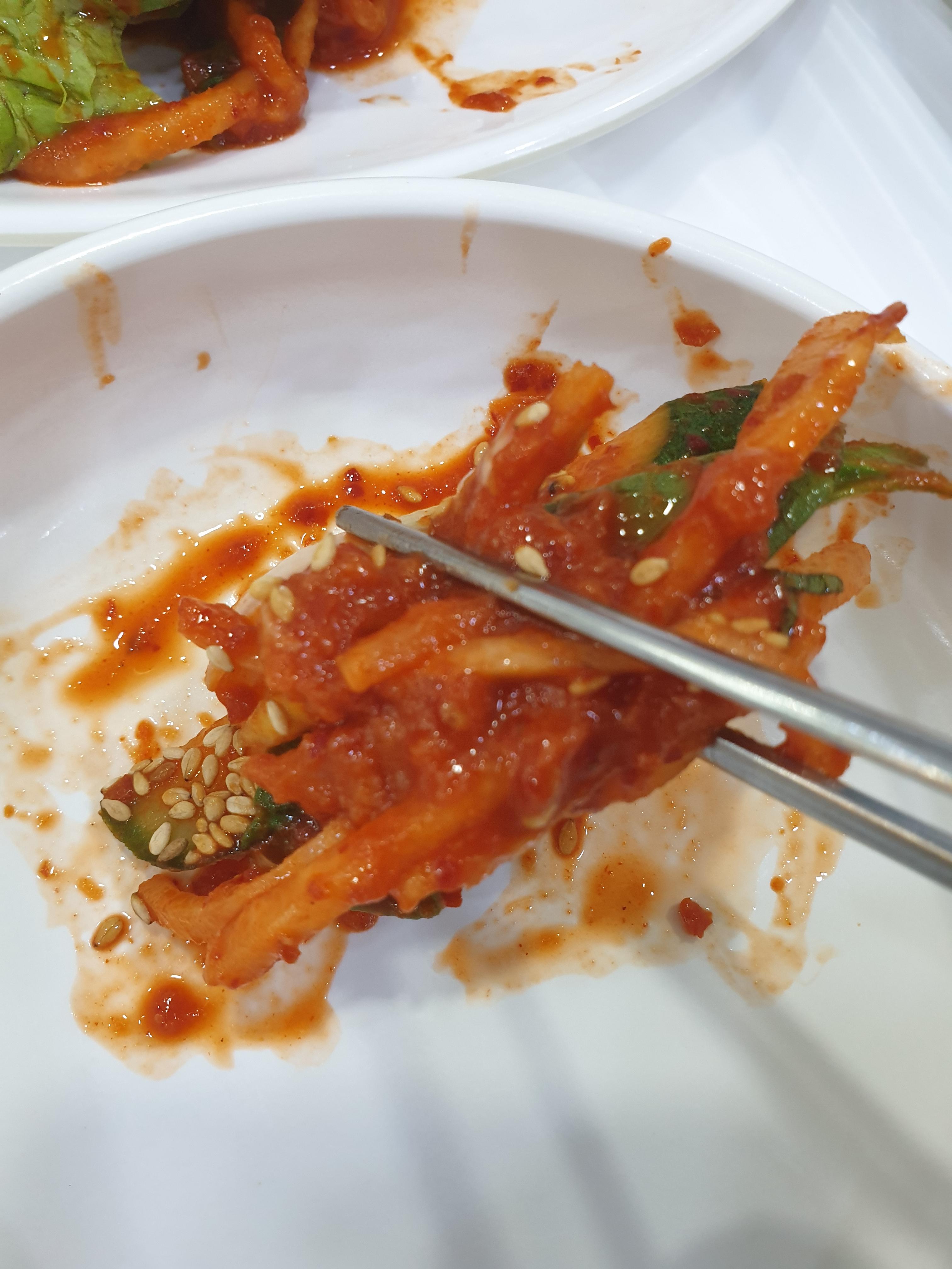 손님이 많아서 밑반찬도 늦게 깔리긴 했는데