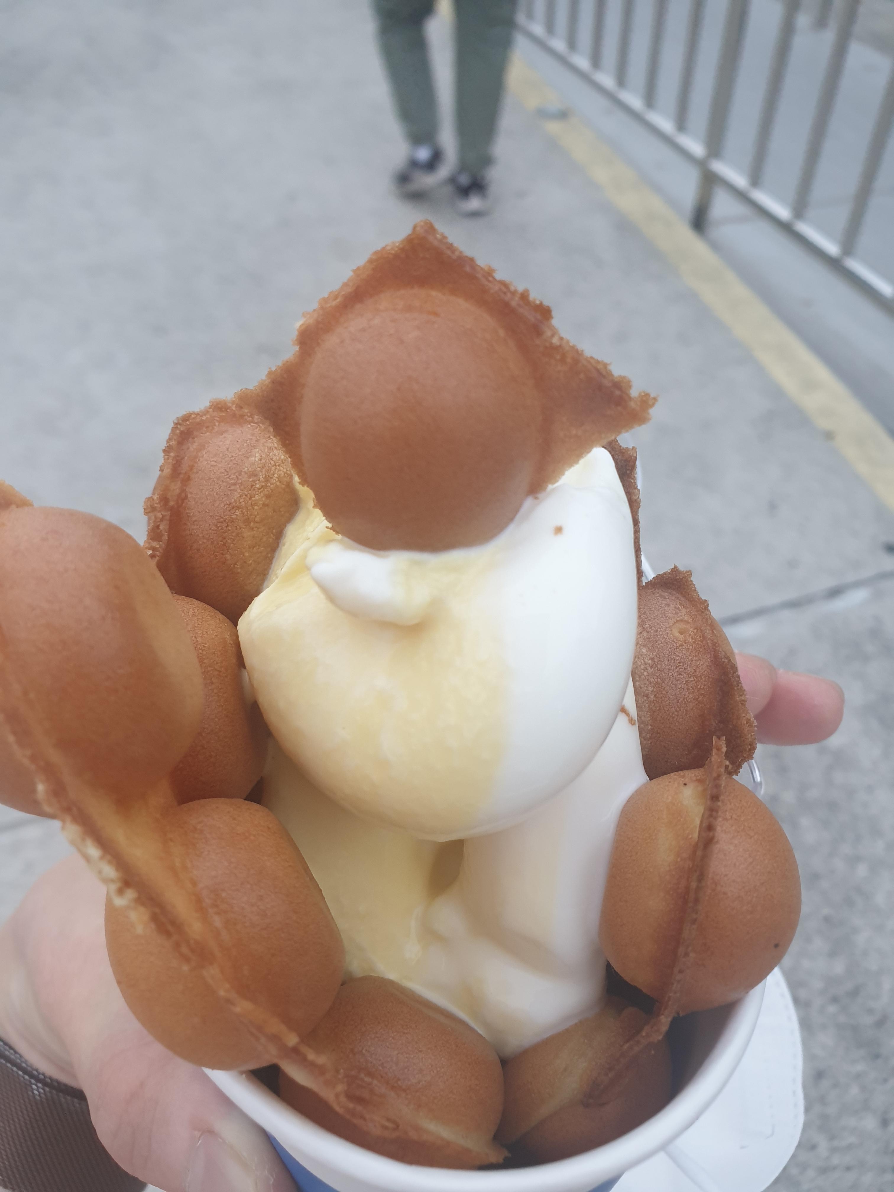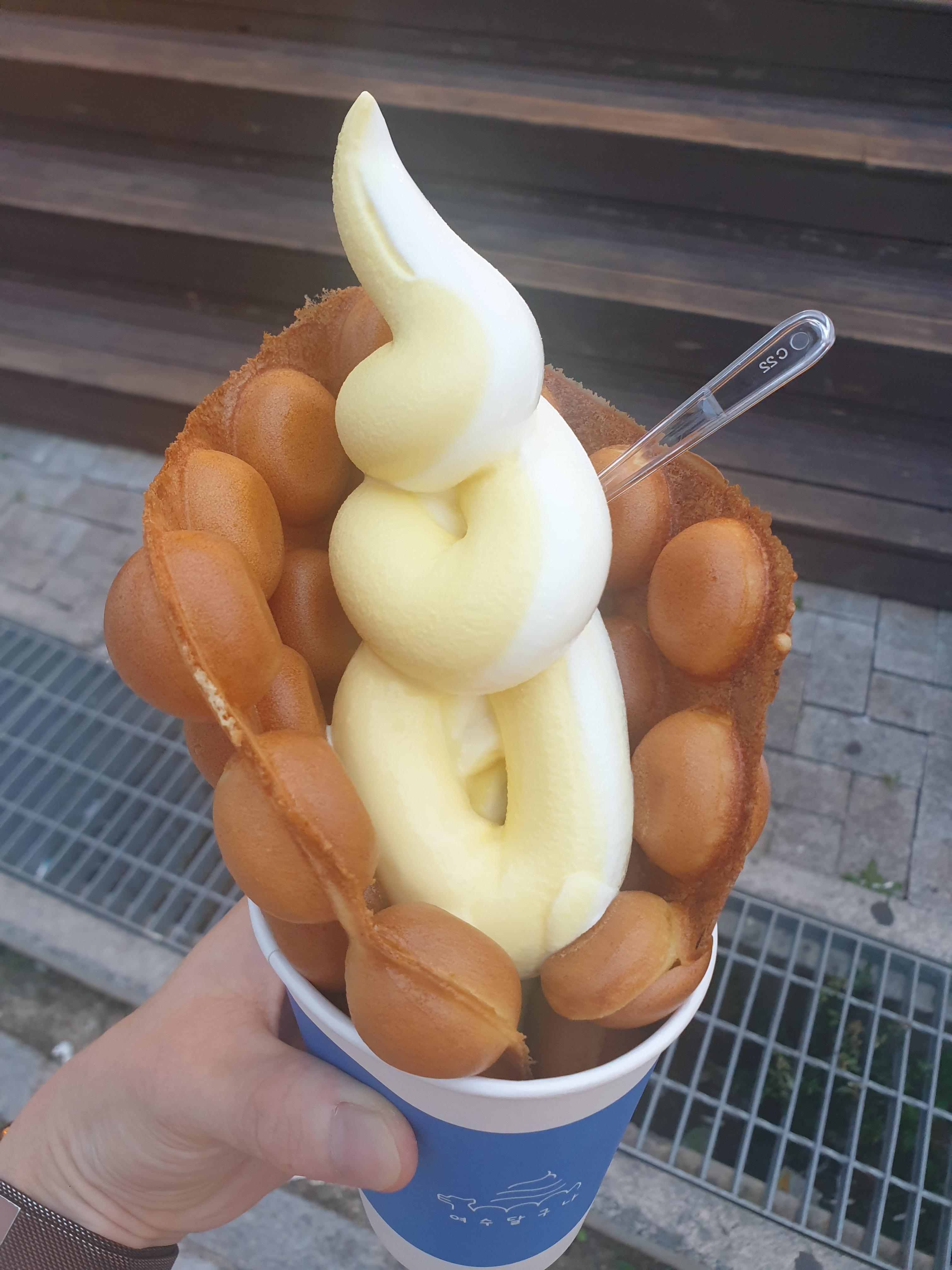여수 달고나에서 와플 아이스크림을 사 먹어봅니다