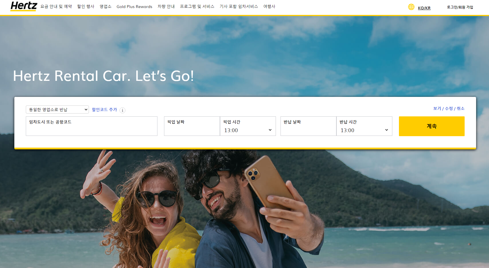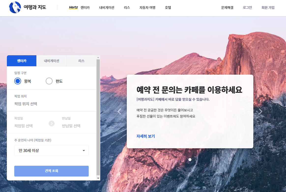 허츠 렌터카 여행과 지도에서 예약하기 끝!