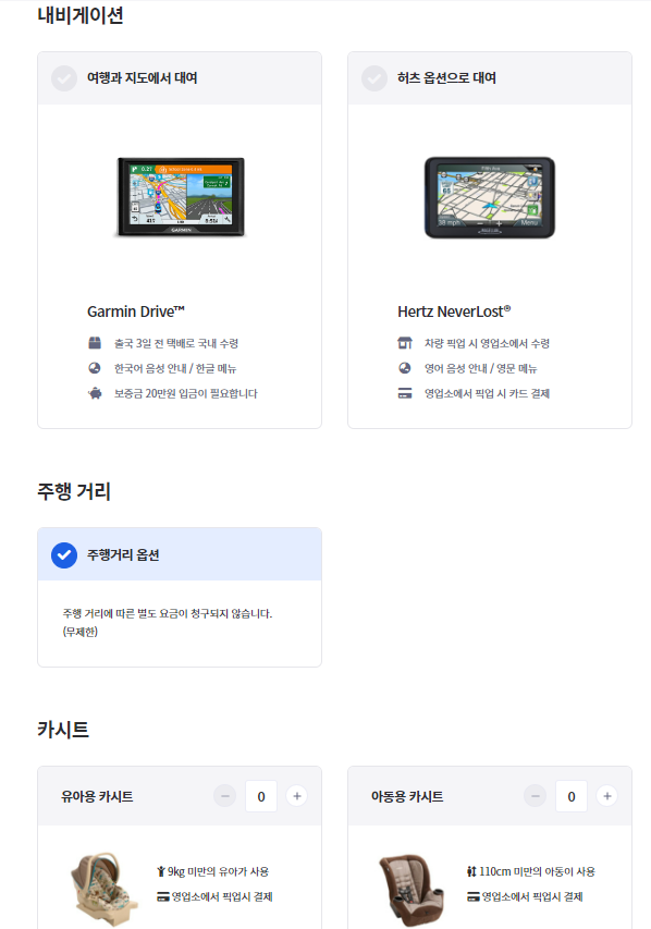 혹시 아이가 있다면 카시트도 추가하시면 됩니다