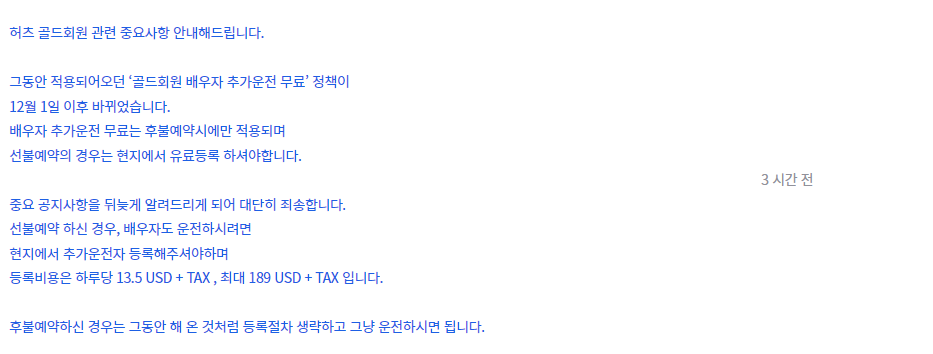 배우자 추가 운전 무료였는데 딱 바뀌었네요..