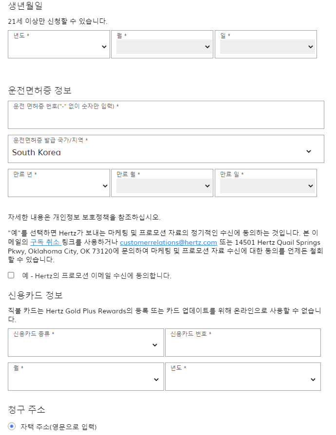 한국 운전면허증만 있으면 가입을 할 수 있어요