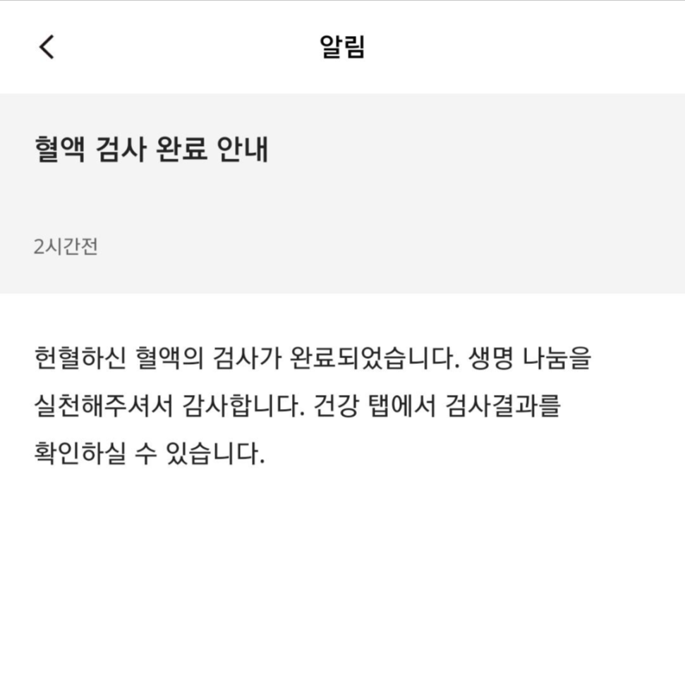 검사 결과를 확인해 주세요!라는 알림이 왔어요