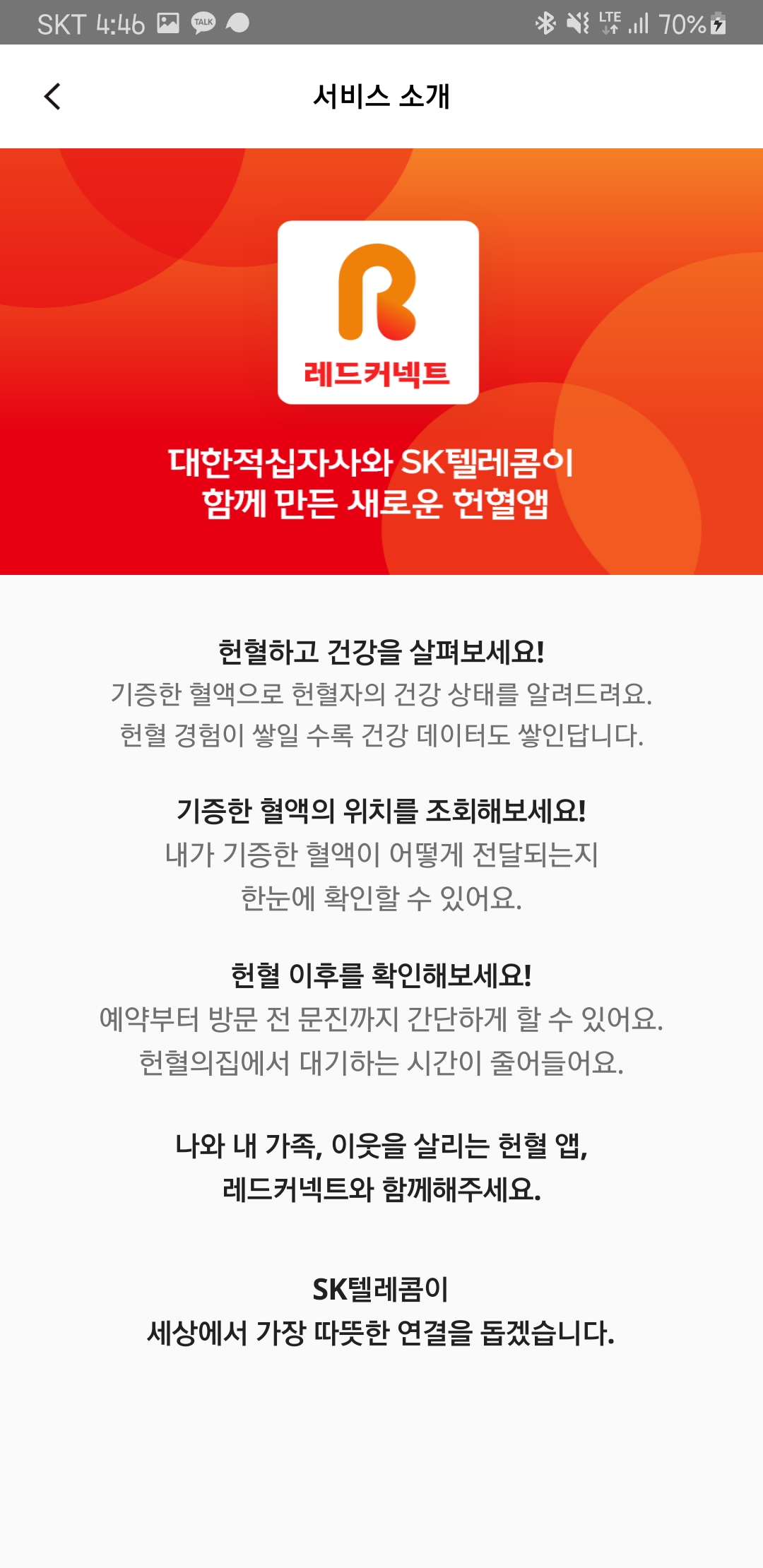 대한적십자사와 SK텔레콤이 함께 만든 공식 헌혈 앱