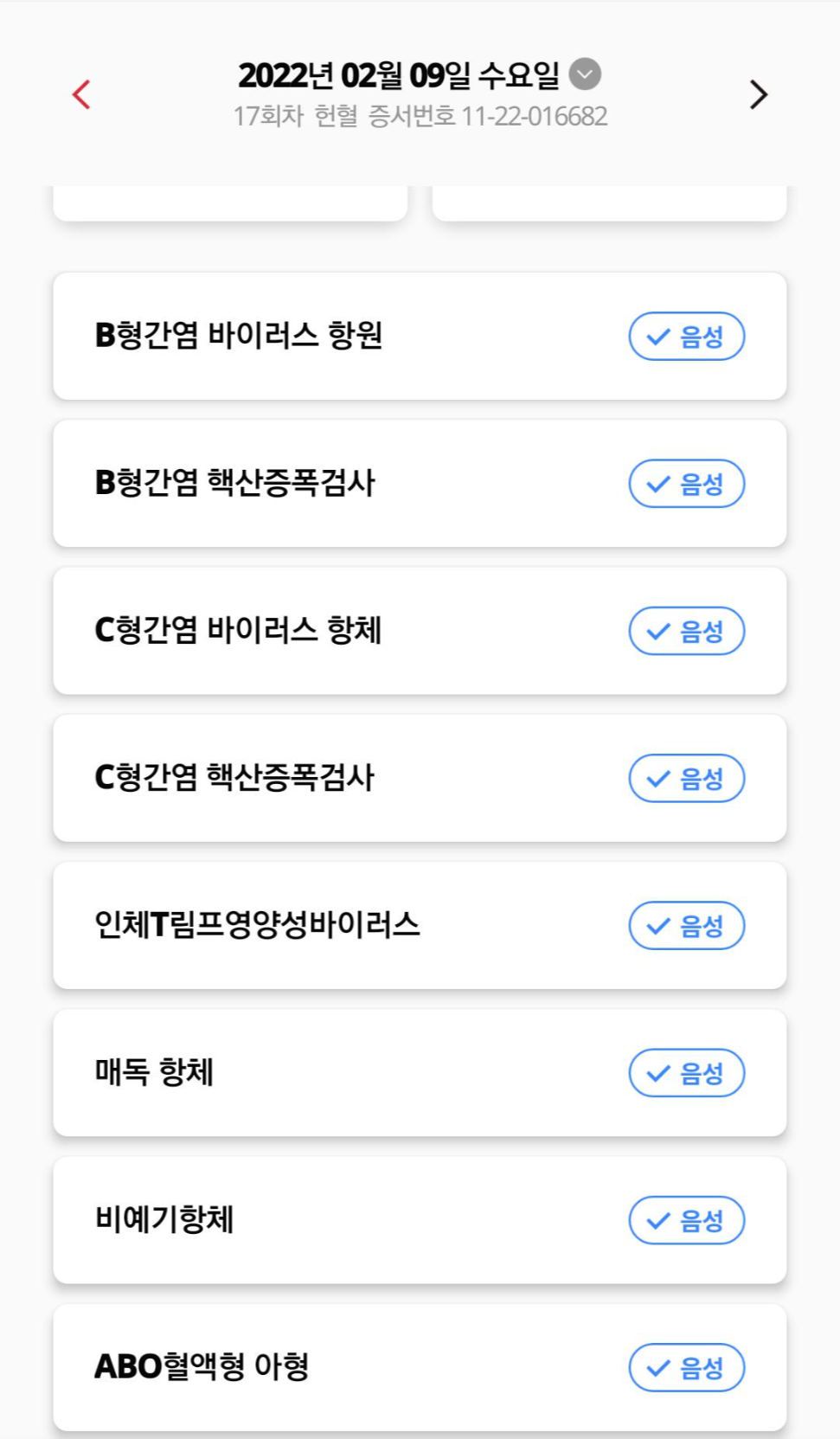 내가 어떤 헌혈을 했었는지 알 수 있고