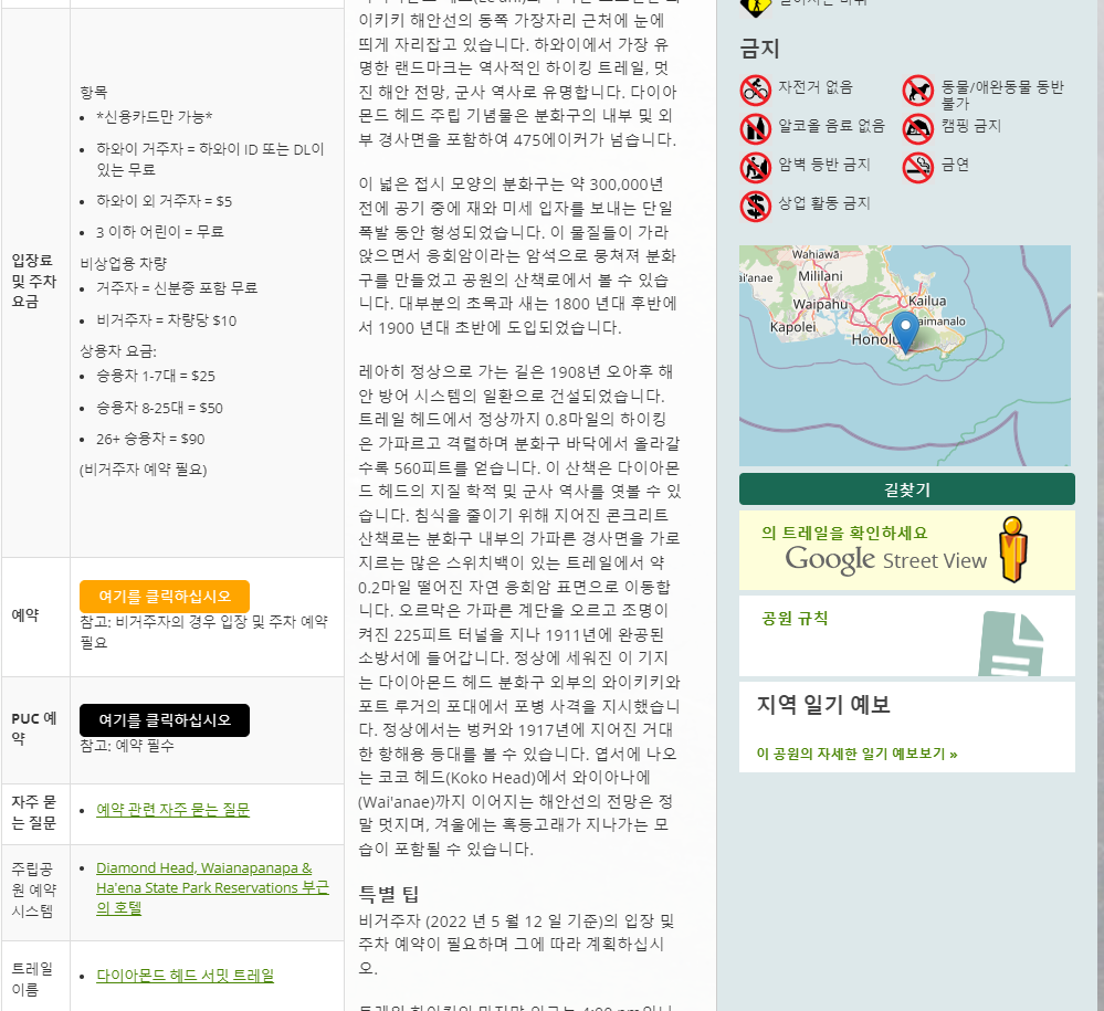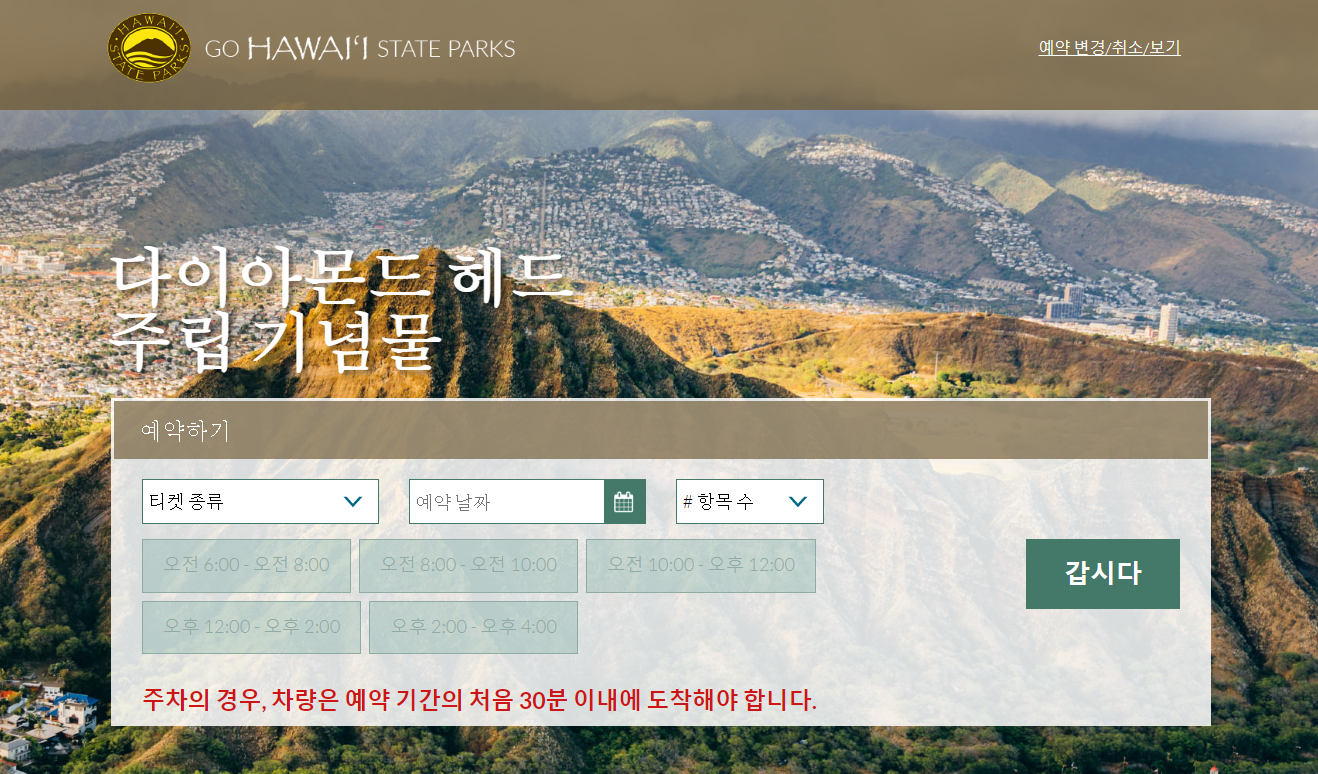 다이아몬드 헤드 스테이트 모뉴먼트 온라인 예약이네요