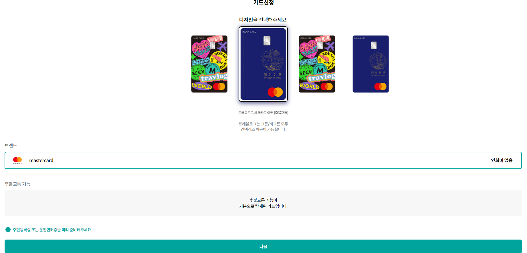 후불교통카드 기능을 사용하실 건지 고르시면 됩니다