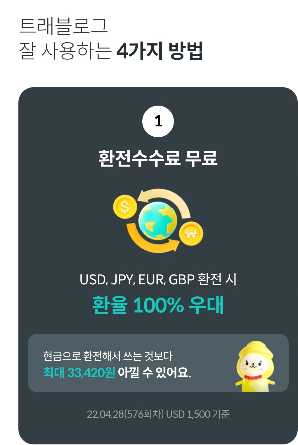 두 번째는 환율 100% 우대해서 환전이 가능해요