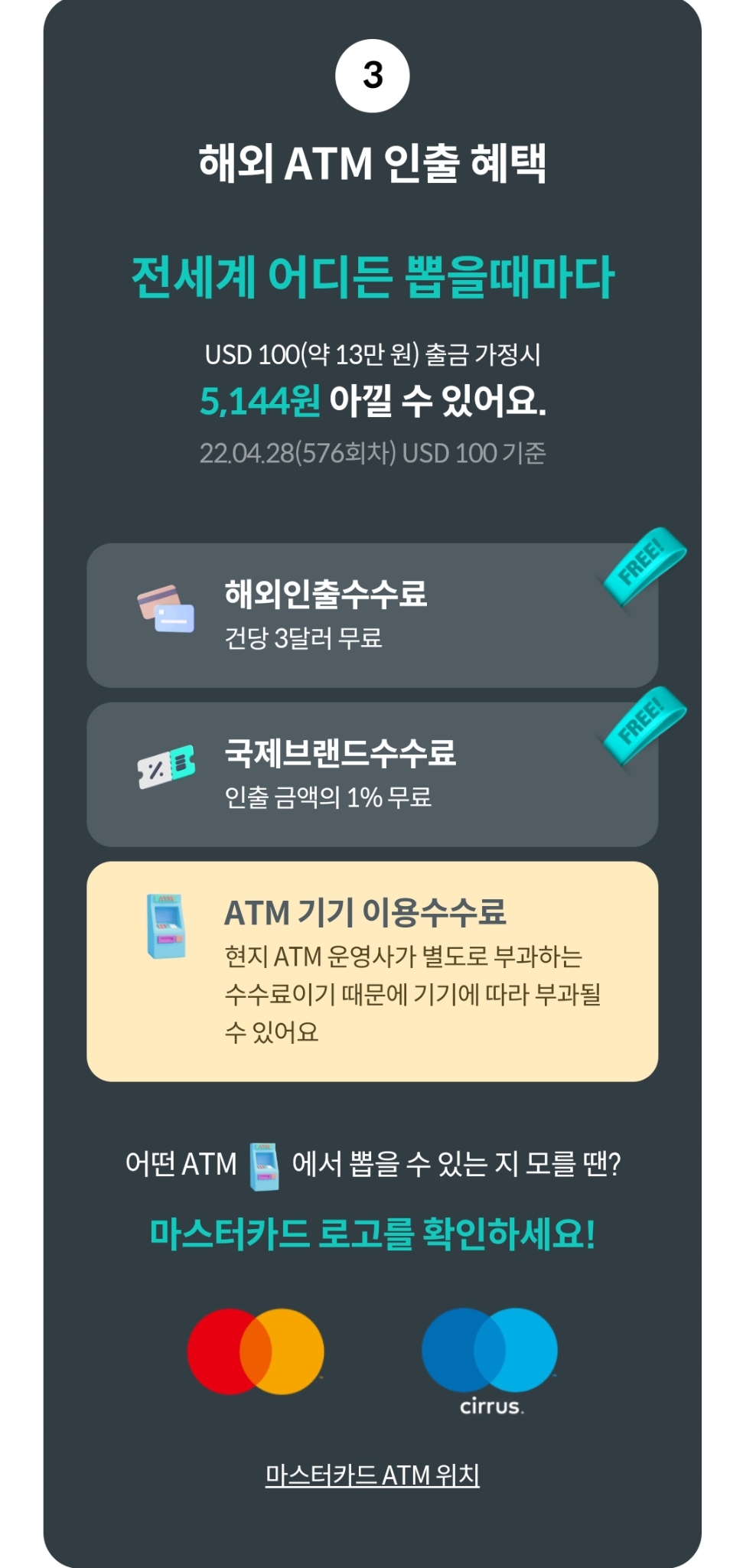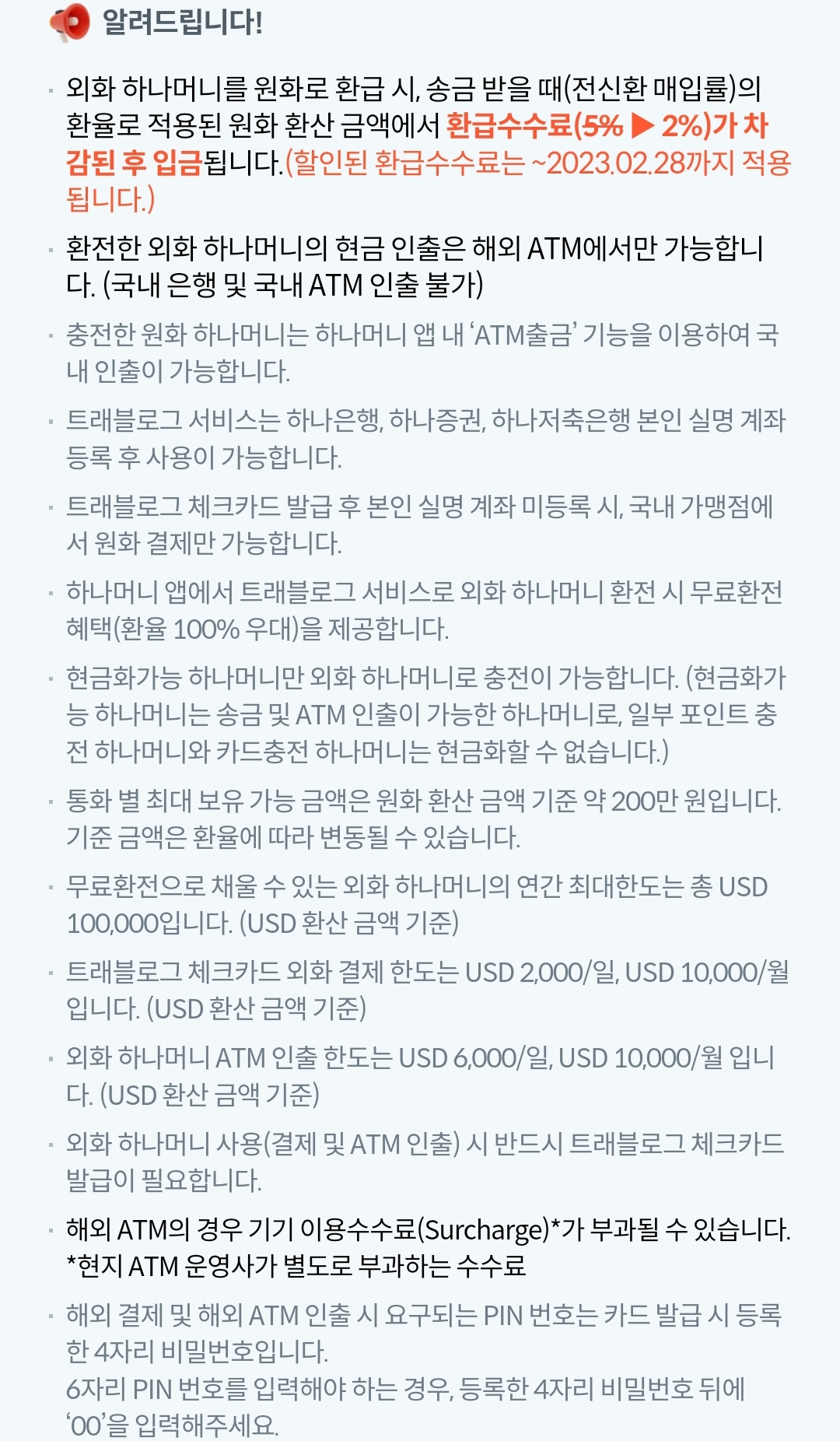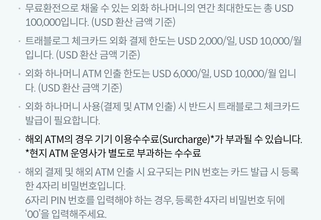 하나는 해외 ATM 인출 수수료가 무료입니다