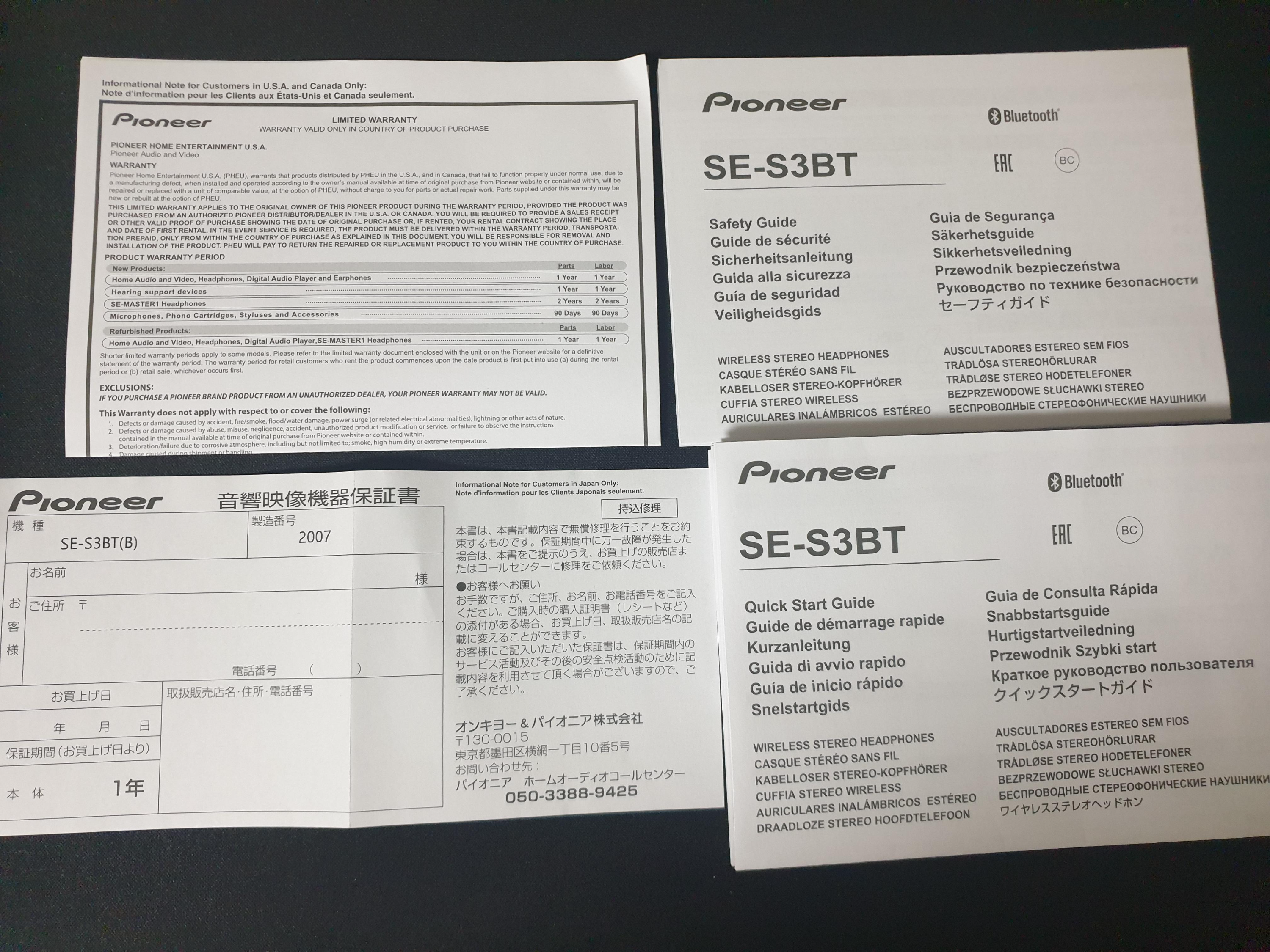 Pioneer S3 wireless 무선 블루투스 헤드셋