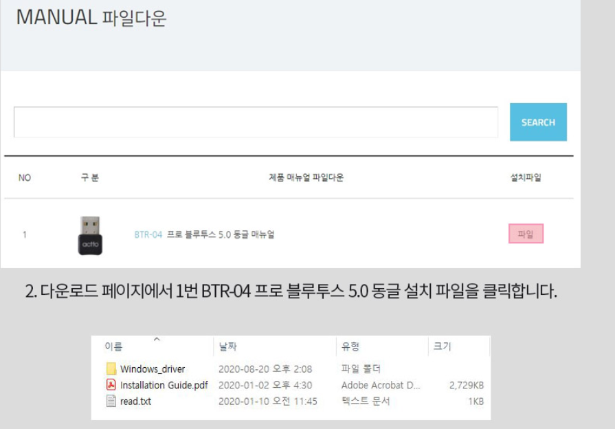 제가 할 건 3번의 블루투스 5.0 동글 메뉴얼!