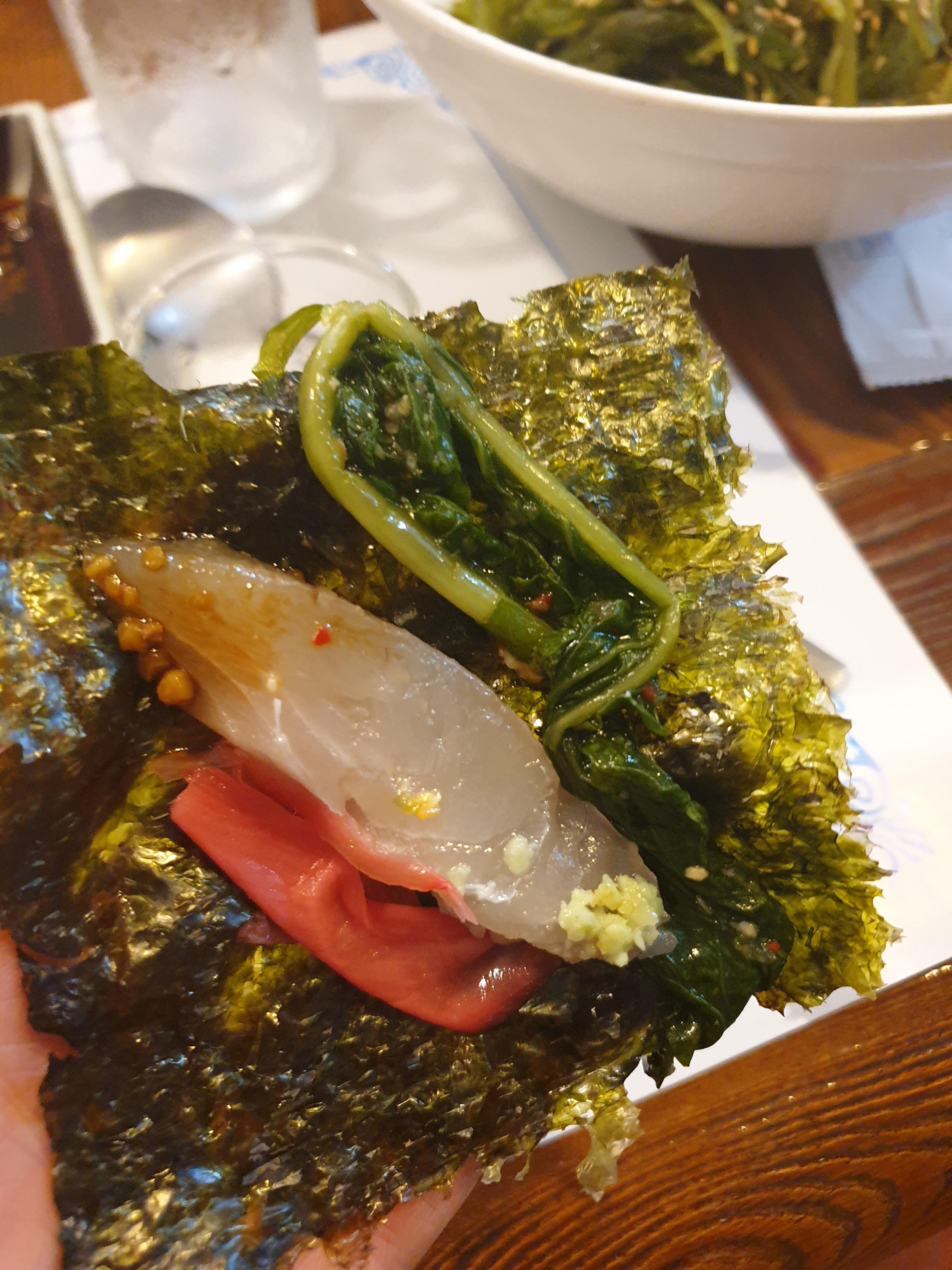 선어회는 김이랑 먹으면 정말 맛있어요